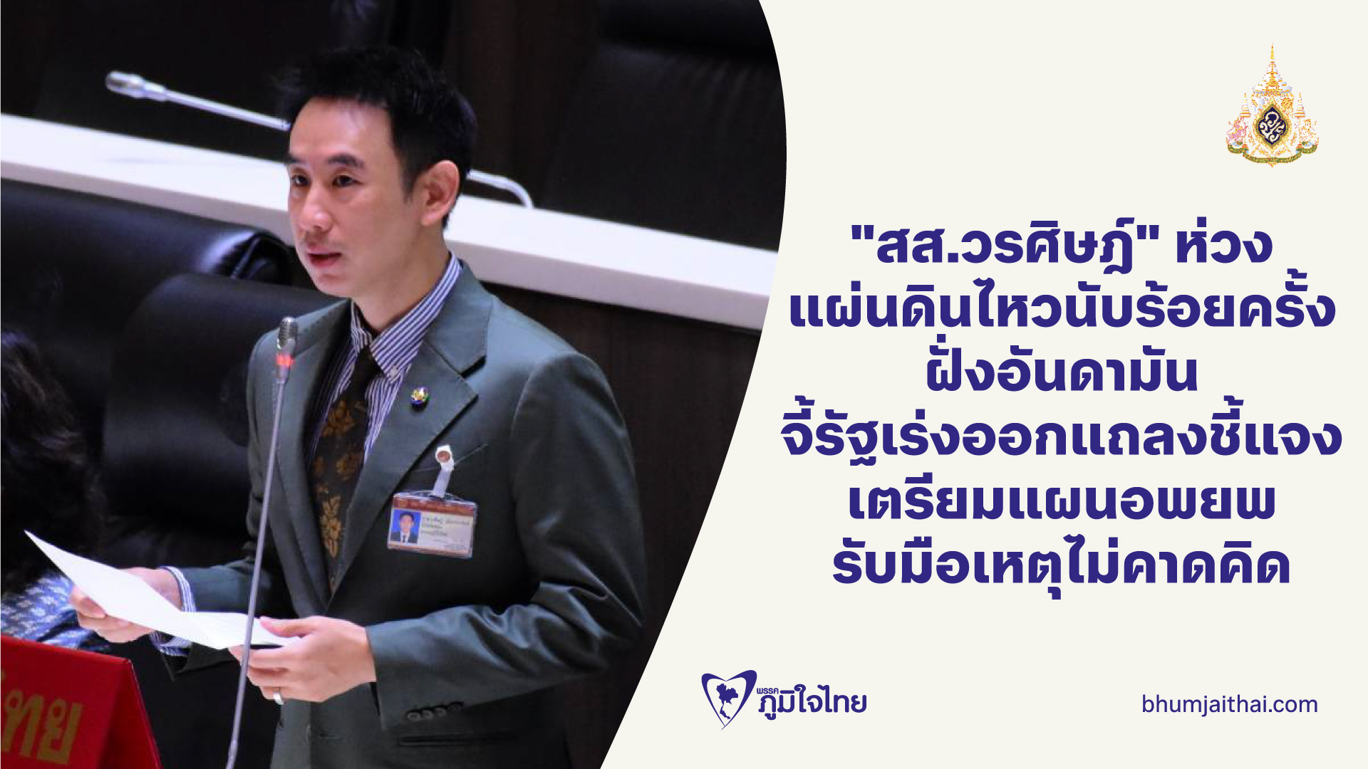 "สส.วรศิษฎ์" ห่วง แผ่นดินไหวนับร้อยครั้งฝั่งอันดามัน สร้างความสับสนแก่ประชาชน จี้รัฐเร่งออกแถลงชี้แจง - เตรียมแผนอพยพรับมือเหตุไม่คาดคิด