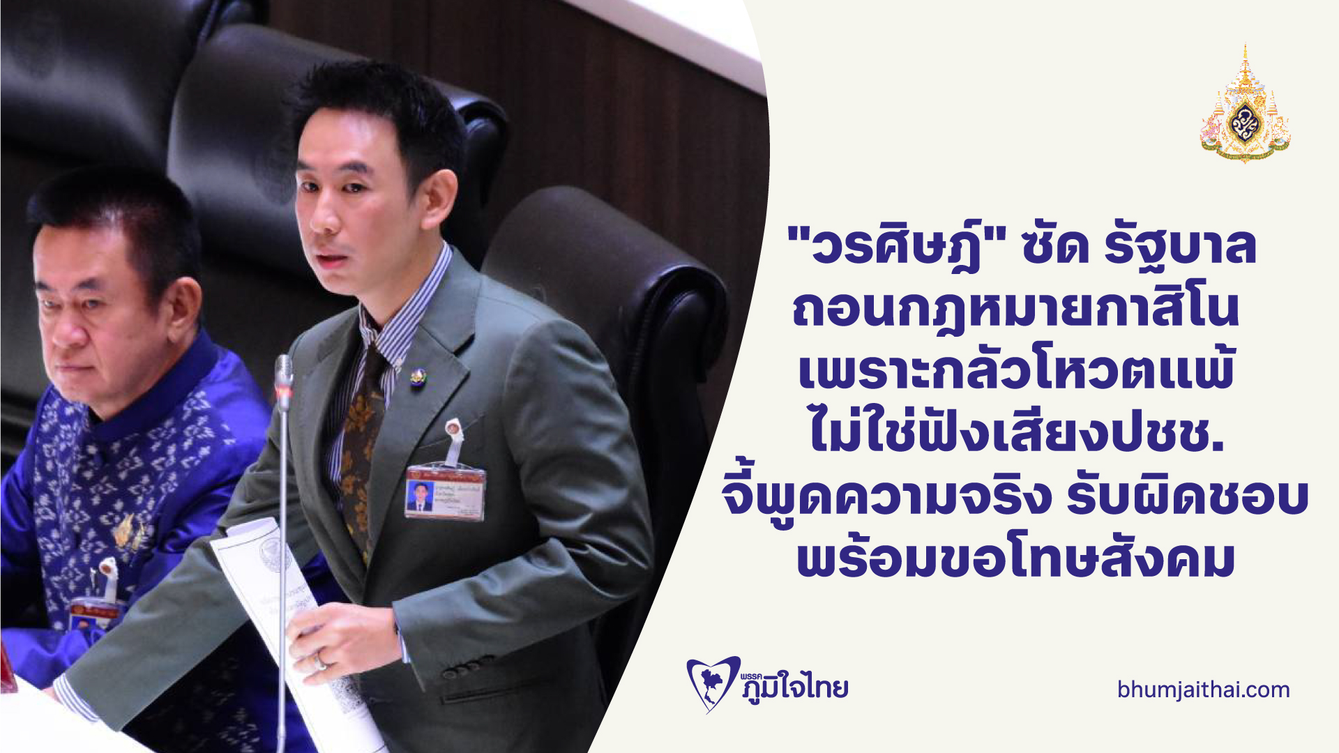 "วรศิษฏ์" ซัด รัฐบาล ถอนกฎหมายกาสิโน เพราะกลัวโหวตแพ้ ไม่ใช่ฟังเสียงปชช. จี้พูดความจริง รับผิดชอบ พร้อมขอโทษสังคม