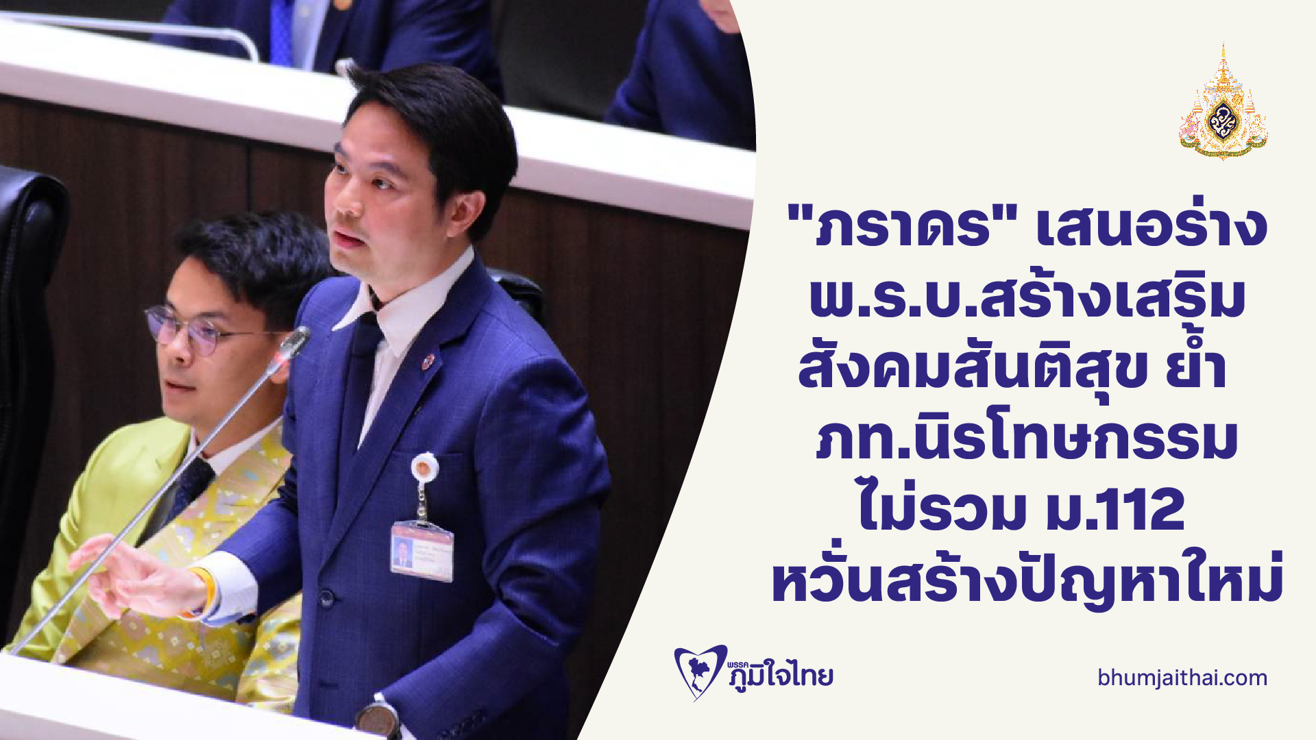 "ภราดร" เสนอร่าง พ.ร.บ.สร้างเสริมสังคมสันติสุข ย้ำจุดยืนภูมิใจไทย นิรโทษกรรมต้องไม่รวม ม.112 หวั่นสร้างปัญหาใหม่ ยกทฤษฎีดอกไม้หลากสี ยอมรับความต่าง รอเวลาสังคมพร้อม