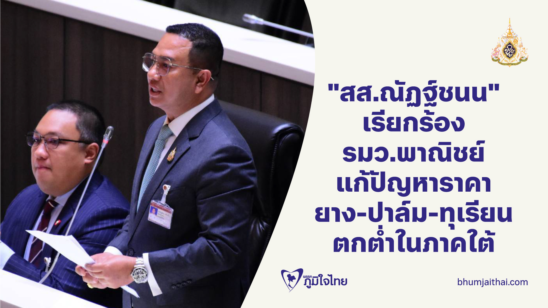 "สส.ณัฏฐ์ชนน" เรียกร้อง รมว.พาณิชย์ แก้ปัญหาราคา ยาง-ปาล์ม-ทุเรียน ตกต่ำในภาคใต้