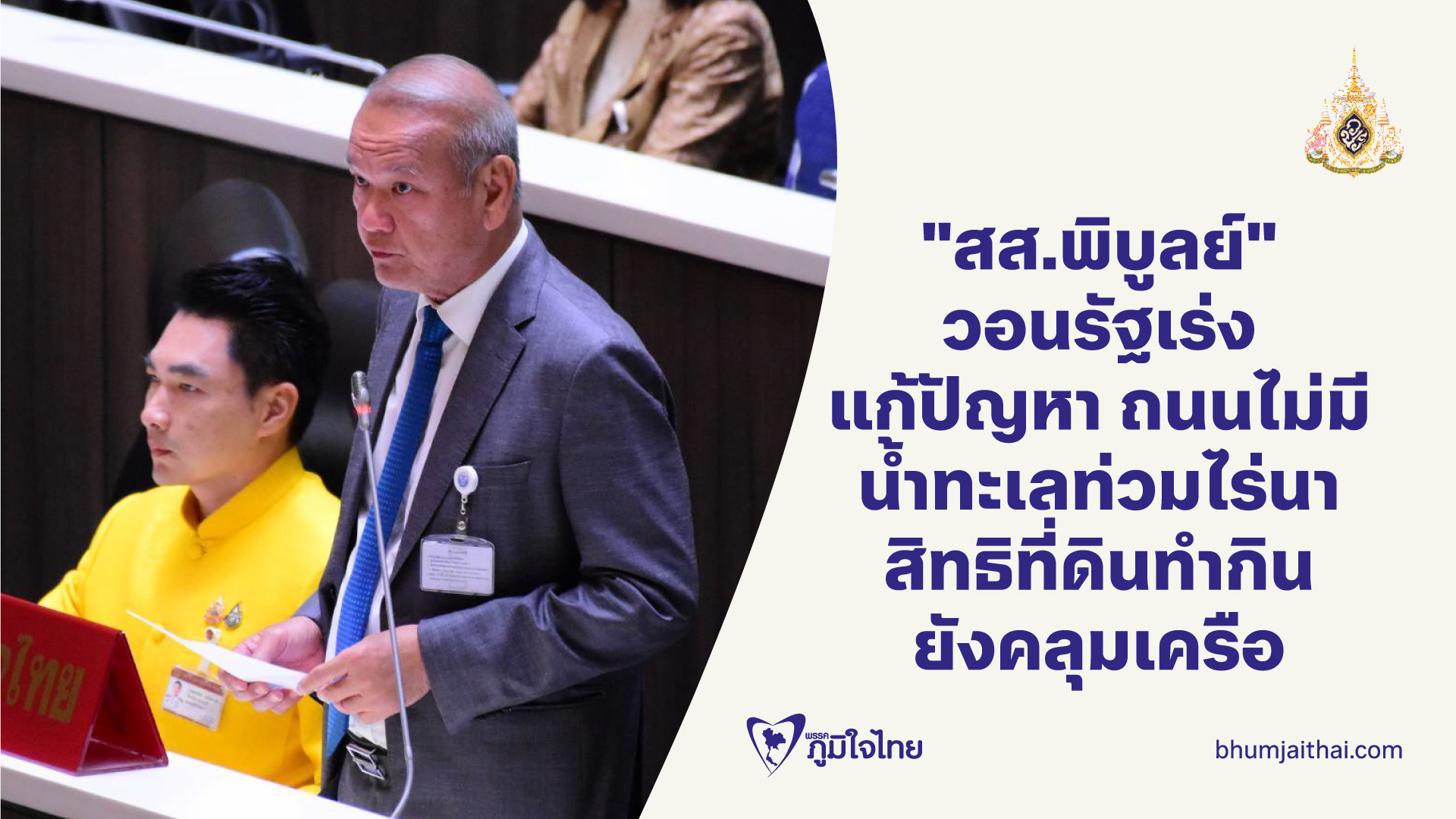 "สส.พิบูลย์" วอนรัฐเร่งแก้ปัญหาชาวบ้าน จ.สตูล ถนนไม่มี-น้ำทะเลท่วมไร่นา-สิทธิในที่ดินทำกินยังคลุมเครือ