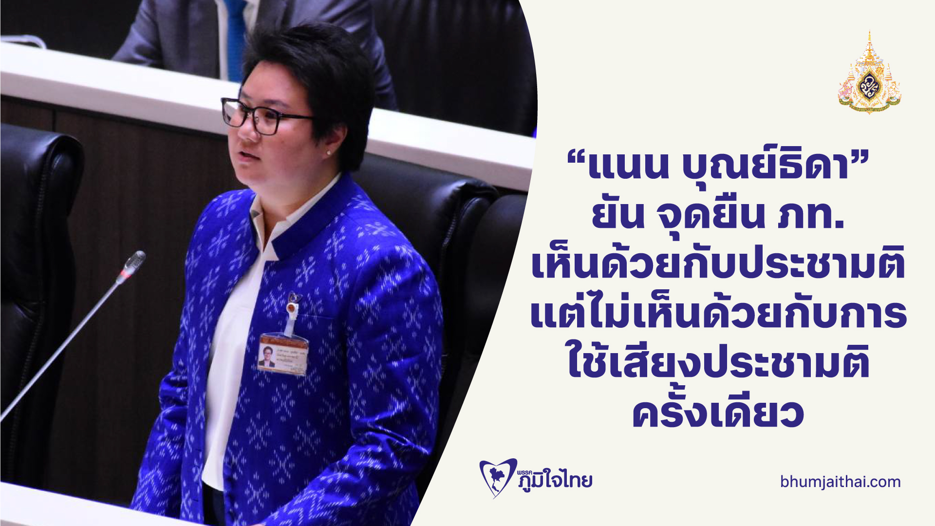 "แนน บุณย์ธิดา" ยัน จุดยืน ภท. เห็นด้วยกับประชามติ แต่ไม่เห็นด้วยกับการ ใช้เสียงประชามติ ครั้งเดียว