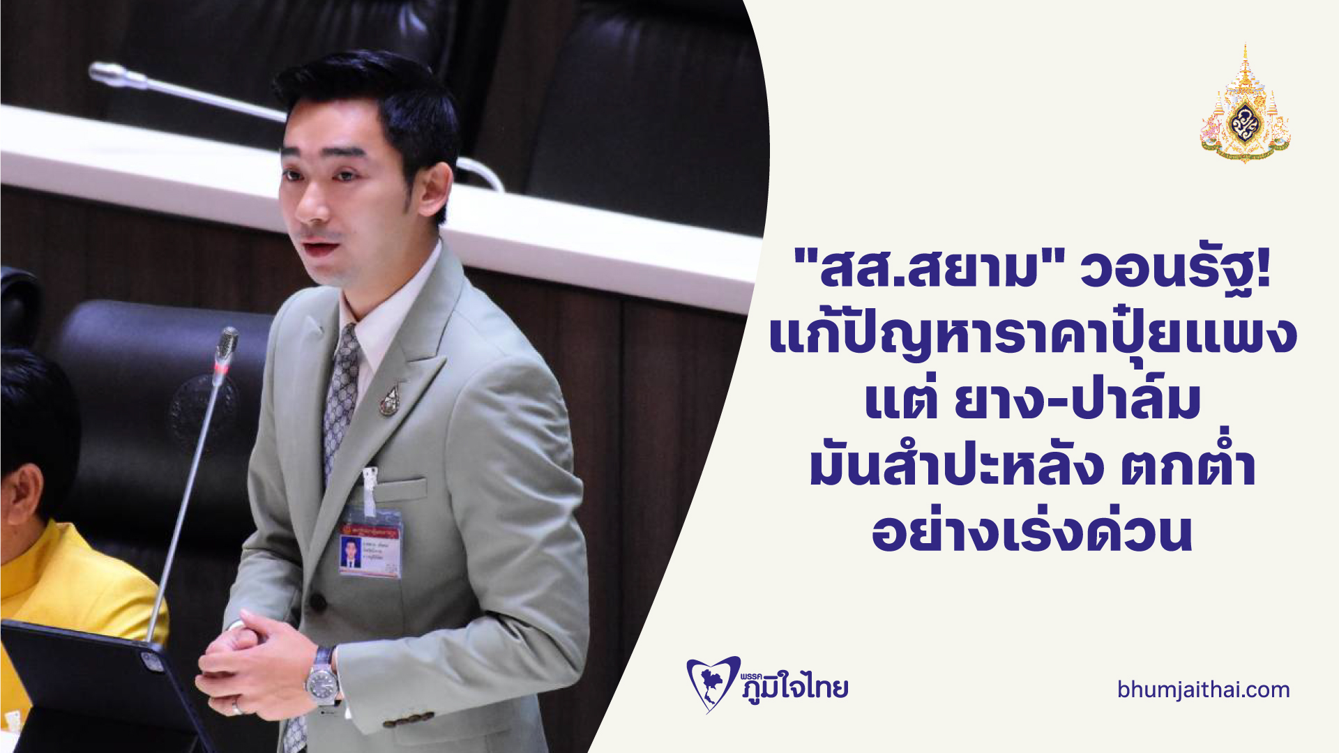 "สส.สยาม" วอนรัฐ! แก้ปัญหาราคาปุ๋ยแพง แต่ยาง- ปาล์ม - มันสำปะหลัง ตกต่ำ อย่างเร่งด่วน