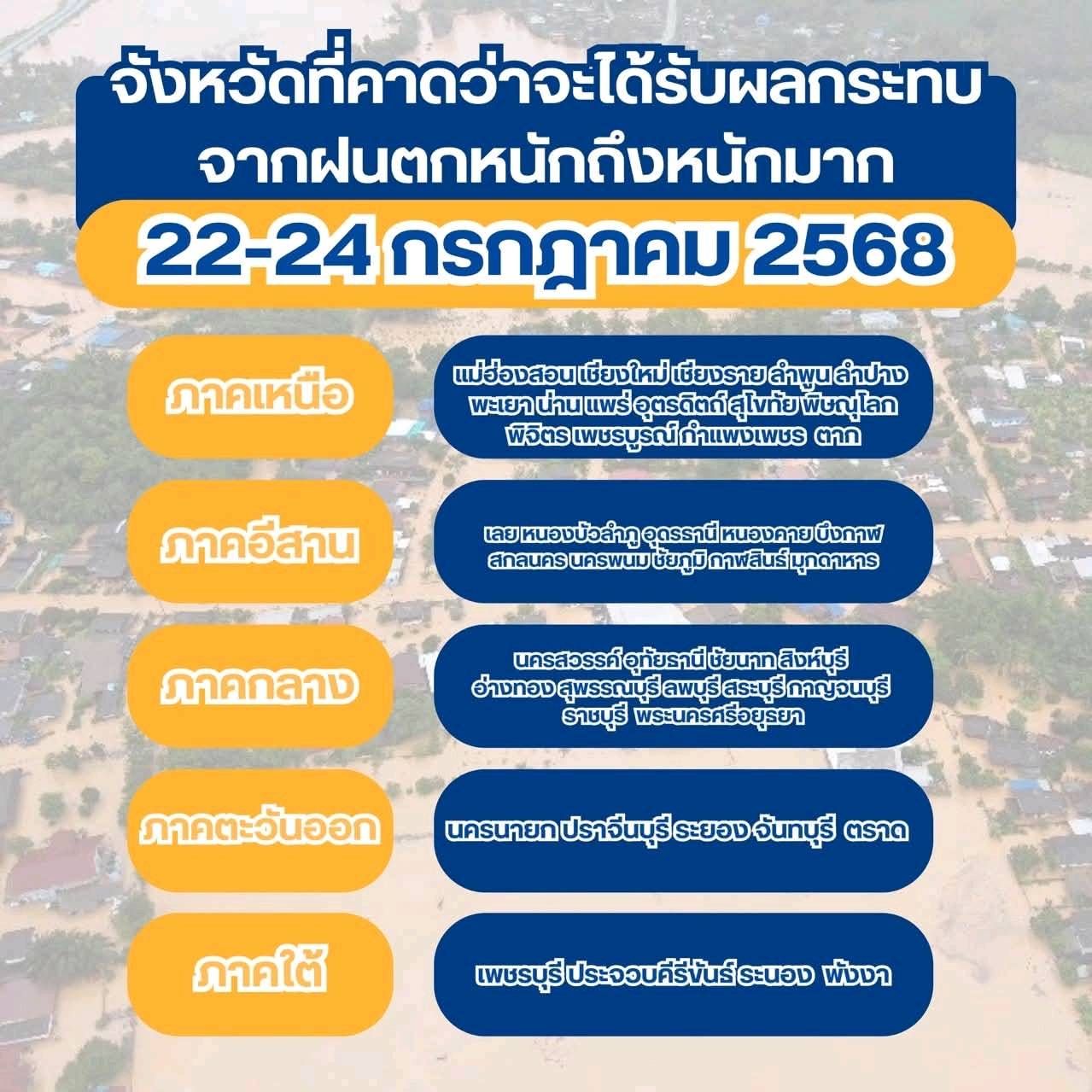 18 กรกฎาคม 2568 นายไชยชนก ชิดชอบ สส.บุรีรัมย์ และเลขาธิการพรรคภูมิใจไทย ได้ โพสต์เฟซบุ๊กส่วนตัว https://www.facebook.com/share/p/16kkKhuxpP/ เตือนประชาชนภาคอีสานตอนบนกับภาคเหนือ ให้เตรียมรับมือพายุ “วิภา” ซึ่งจะทำให้เกิดฝนตกหนักหลายพื้นที่ โดย กรมอุตุฯ เตือนวันที่ 19-24 กรกฎาคม 2568 ภาคเหนือ อีสาน ตะวันออก และภาคใต้ เสี่ยงน้ำท่วมฉับพลัน คลื่นลมแรง เรือเล็กควรงดออกจากฝั่ง โดยพายุ “วิภา” จากฟิลิปปินส์ เสริมมรสุม ฝนยิ่งแรง โปรดระวังพื้นที่ลาดเชิงเขา และทางน้ำไหลผ่านด้วย