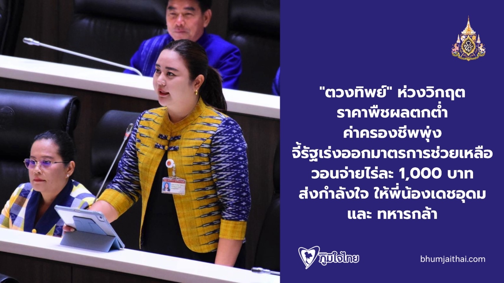 เกษตรกรจะอดตายอยู่แล้ว ! "สส.ตวงทิพย์" ห่วงวิกฤตราคาพืชผลตกต่ำ-ค่าครองชีพพุ่ง จี้รัฐเร่งออกมาตรการช่วยเหลือ วอนจ่ายไร่ละ 1,000 บาทเป็นเงินสดทั้งหมด พร้อมส่งกำลังใจส่งให้พี่น้องเดชอุดม และทหารกล้า