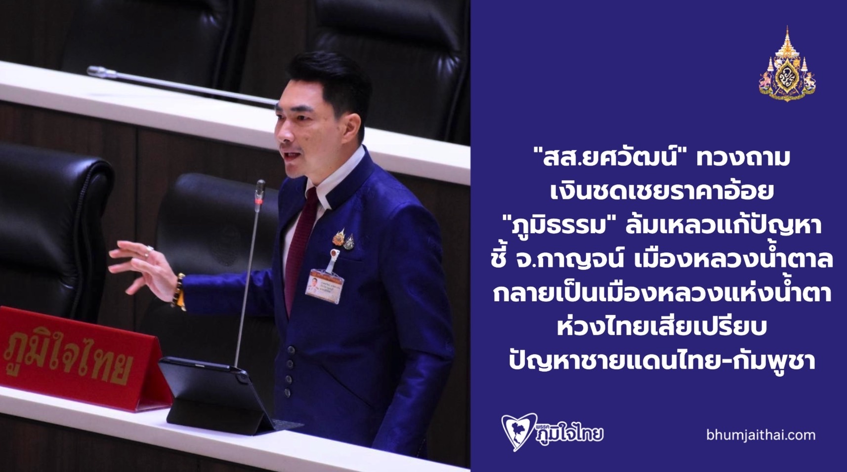 "สส.ยศวัฒน์" ทวงถาม เงินชดเชยราคาอ้อย "ภูมิธรรม" ล้มเหลวแก้ปัญหา ชี้ จ.กาญจน์ เมืองหลวงน้ำตาล กลายเป็นเมืองหลวงแห่งน้ำตา ห่วงไทยเสียเปรียบ ปัญหาชายแดนไทย-กัมพูชา