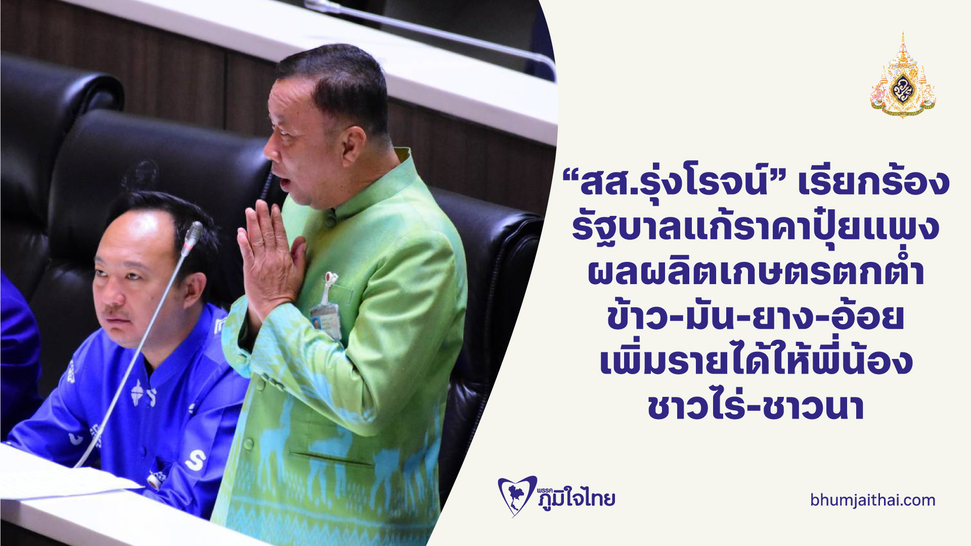ลดราคาปุ๋ย เพิ่มราคาพืชผล ! สส.รุ่งโรจน์ เรียกร้องรัฐบาลแก้ราคาปุ๋ยแพง ผลผลิตเกษตรตกต่ำ ข้าว-มัน-ยาง-อ้อย เพิ่มรายได้ให้พี่น้องชาวไร่-ชาวนา