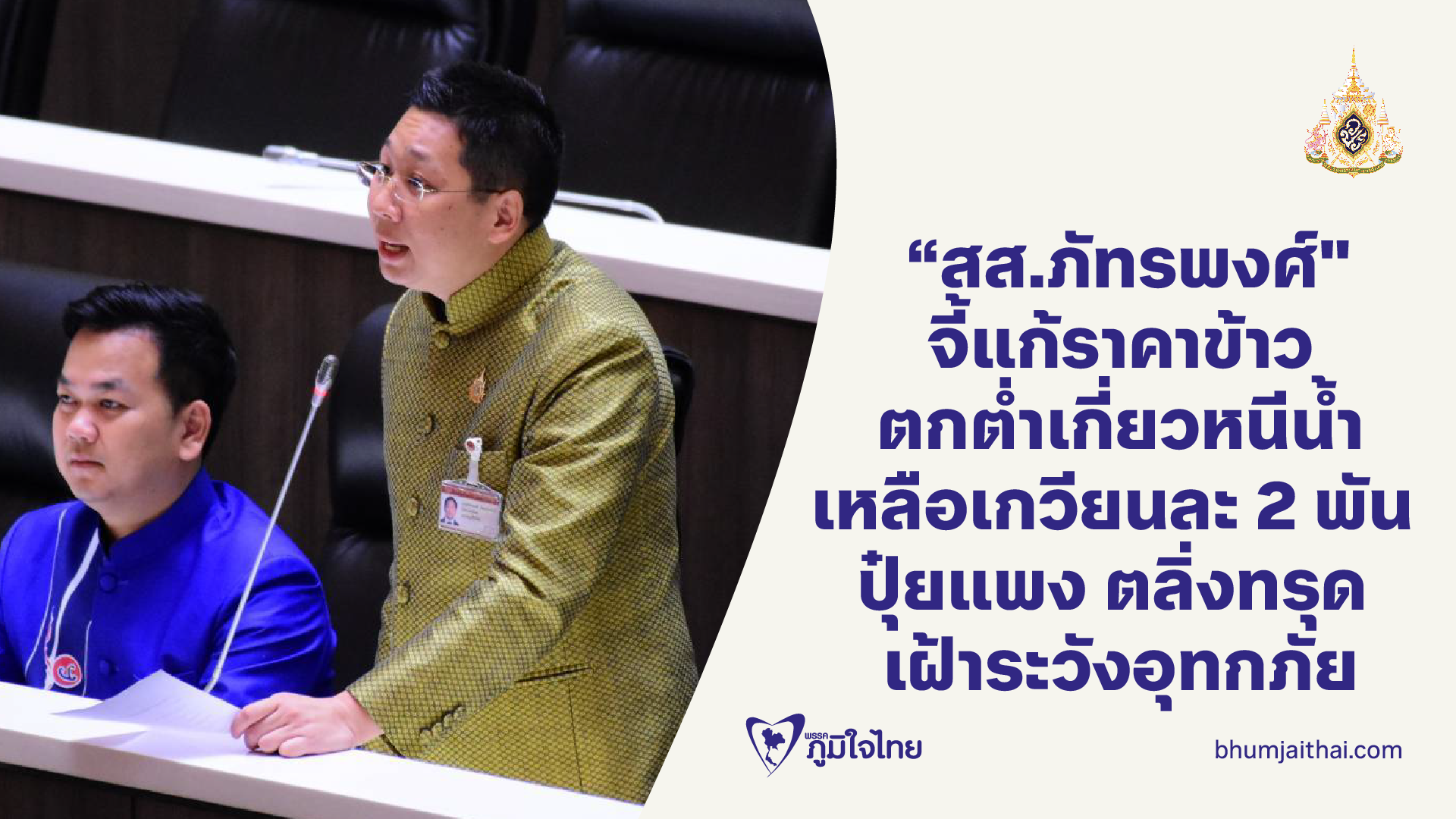 "สส.ภัทรพงศ์" จี้แก้ราคาข้าว ตกต่ำเกี่ยวหนีน้ำ เหลือเกวียนละ 2 พัน ปุ๋ยแพง ตลิ่งทรุด เฝ้าระวังอุทกภัย