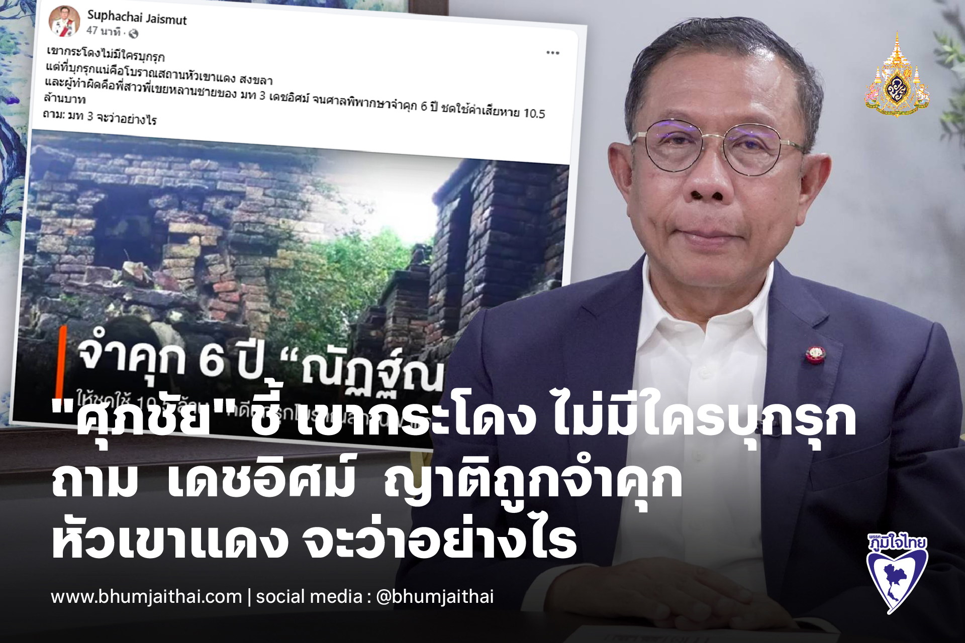 "ศุภชัย" ชี้ "เขากระโดง" ไม่มีใครบุกรุก ย้อนถาม เดชอิศม์ ญาติถูกจำคุก รุกโบราณสถานหัวเขาแดง จะว่าอย่างไร