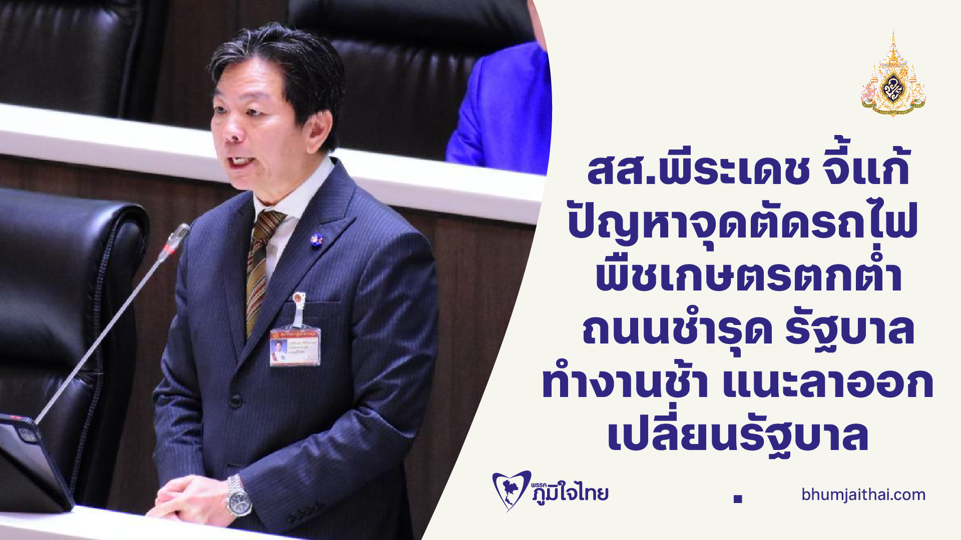 สส.พีระเดช จี้แก้ ปัญหาจุดตัดรถไฟ พืชเกษตรตกต่ำ ถนนชำรุด รัฐบาล ทำงานช้า แนะลาออก เปลี่ยนรัฐบาล