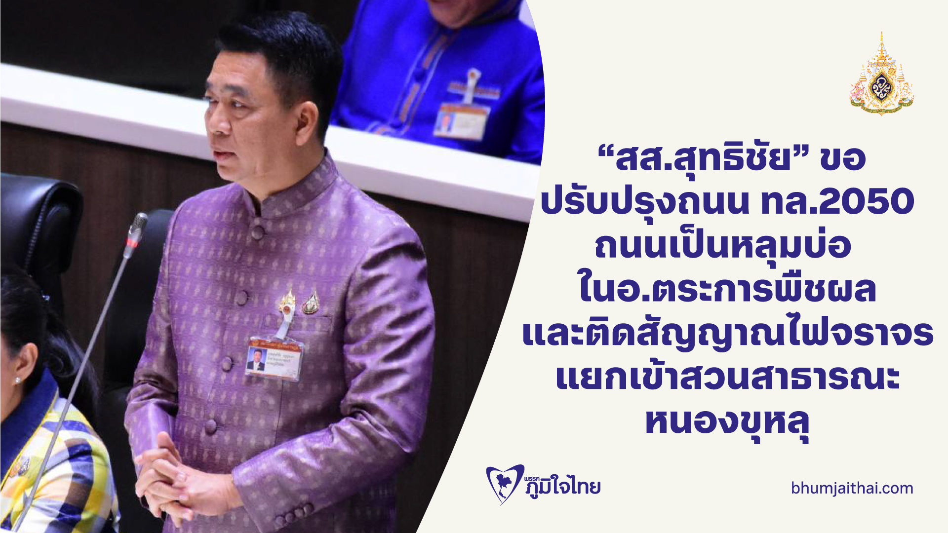 "สส.สุทธิชัย" ขอ ปรับปรุงถนน ทล.2050 ถนนเป็นหลุมบ่อ ในอ.ตระการพืชผล และติดสัญญาณไฟจราจร แยกเข้าสวนสาธารณะ หนองขุหลุ