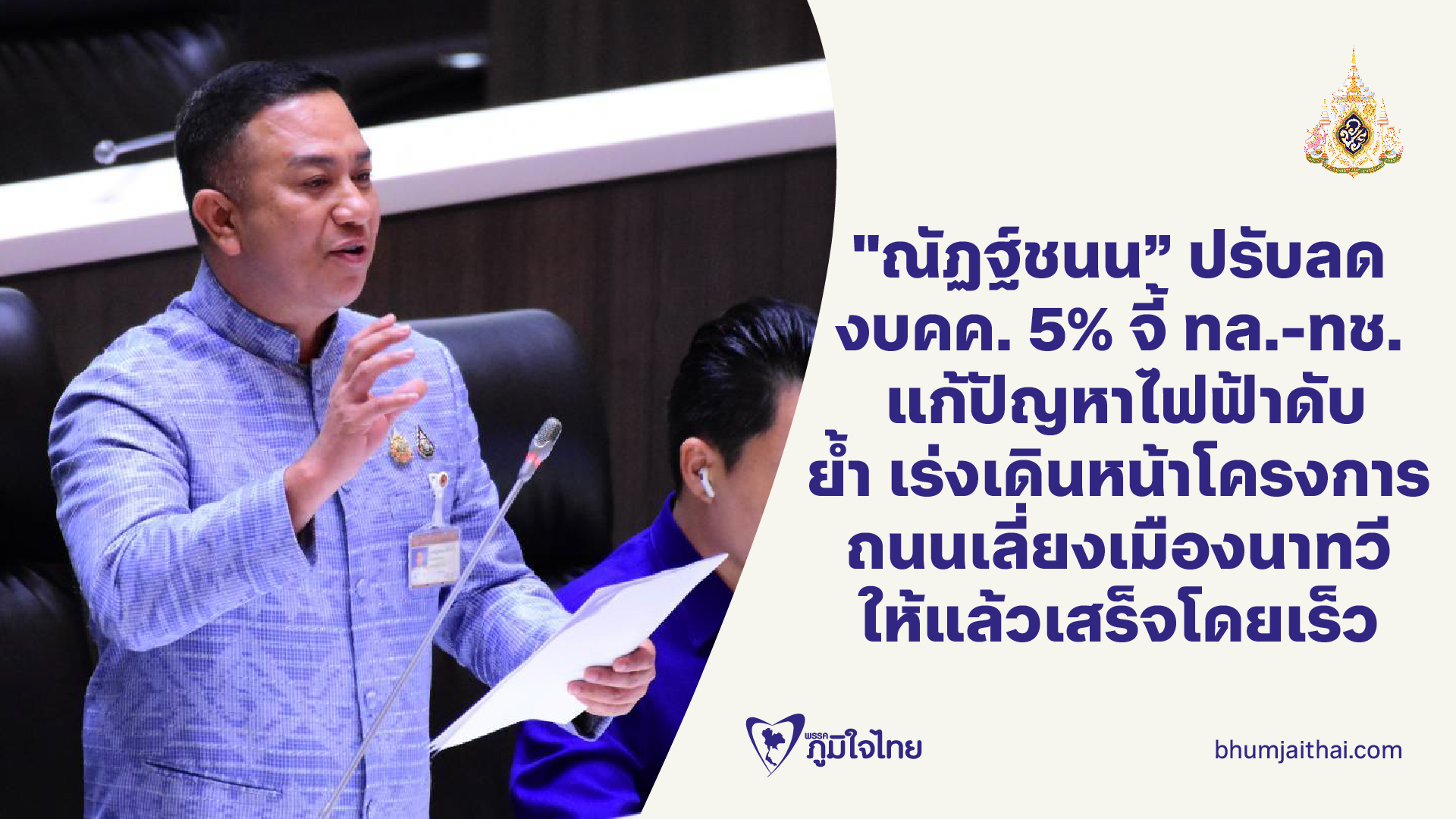 "ณัฏฐ์ชนน" ปรับลด งบคค. 5% จี้ ทล.-ทช. แก้ปัญหาไฟฟ้าดับ ย้ำ เร่งเดินหน้าโครงการ ถนนเลี่ยงเมืองนาทวี ให้แล้วเสร็จโดยเร็ว