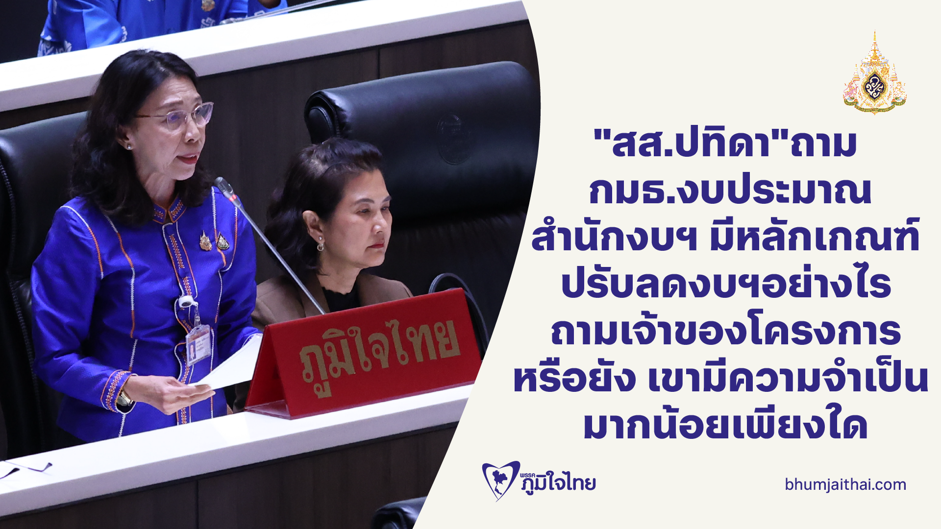 2. โครงการที่ตัดไปได้สอบถามไปยังเจ้าของโครงการที่เค้าได้ส่งรายละเอียดโครงการคําขอมาหรือไม่ว่าโครงการนี้มีความจําเป็นมากน้อยเพียงใด ขนาดไหน ที่ต้องขอรับงบสนับสนุนจากทางกระทรวง เป็น 2 คําถามที่ดิฉันขออนุญาตถามไปถึงคณะกรรมาธิการวิสามัญ พิจารณา ร่างพระราชบัญญัติงบประมาณรายจ่ายประจําปี 2569 ค่ะ นางปทิดา กล่าว