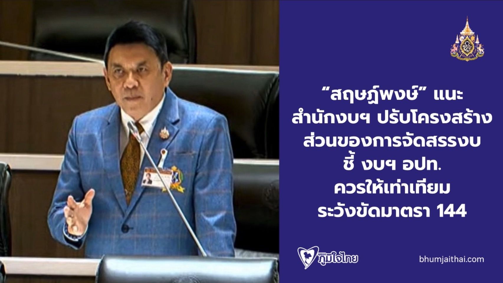 "สฤษฏ์พงษ์" แนะ สำนักงบฯ ปรับโครงสร้าง ส่วนของการจัดสรรงบ ชี้ งบฯ อปท. ควรให้เท่าเทียม ระวังขัดมาตรา 144