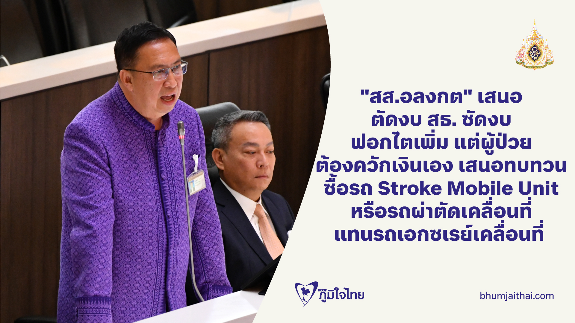 "สส.อลงกต" เสนอตัดงบสาธารณสุข ซัดงบฟอกไตเพิ่ม แต่ผู้ป่วยต้องควักเงินเอง เสนอทบทวนงบฯ ซื้อรถเอกซเรย์เคลื่อนที่ ชี้ควรเป็นรถ Stroke Mobile Unit หรือรถผ่าตัดเคลื่อนที่ คุ้มค่ากว่า
