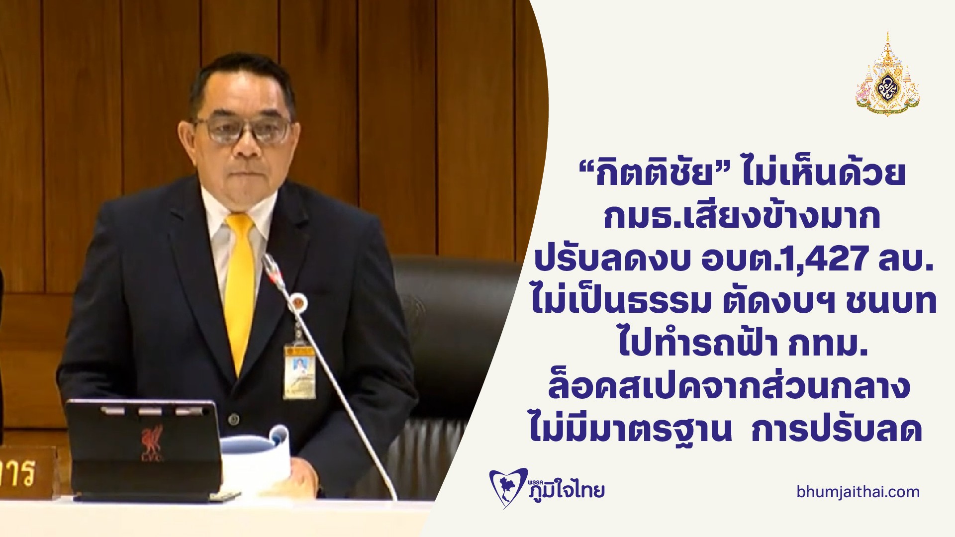 "กิตติชัย" ไม่เห็นด้วย กมธ.เสียงข้างมาก ปรับลดงบ อบต.1,427 ลบ. ไม่เป็นธรรม ตัดงบฯ ชนบท ไปทำรถฟ้า กทม. ล็อดสเปดจากส่วนกลาง ไม่มีมาตรฐาน การปรับลด