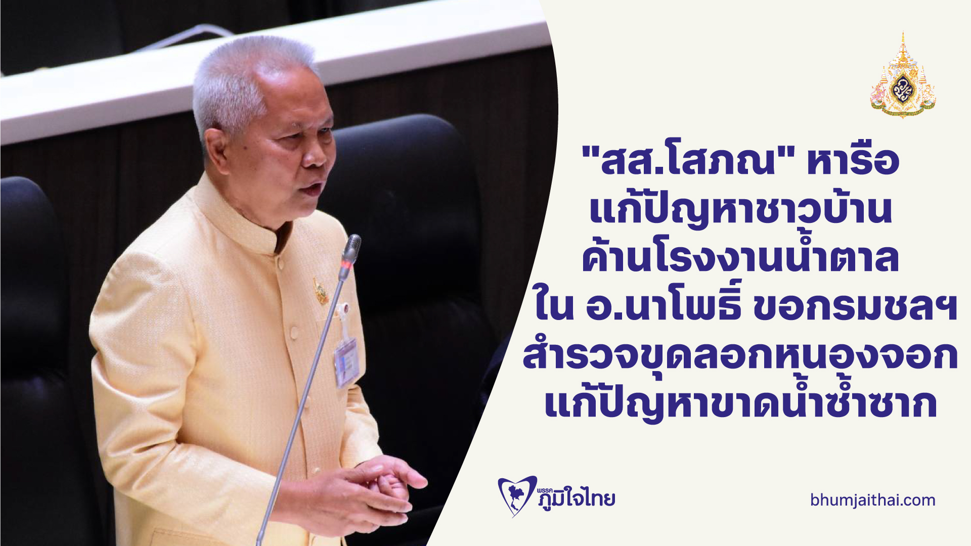 ไม่สอดคล้องวิถีชีวิต ! "สส.โสภณ" หารือสภาฯ แก้ปัญหาชาวบ้านค้านโรงงานน้ำตาลใน อ.นาโพธิ์ หวั่นกระทบแหล่งน้ำชุมชน พร้อมขอกรมชลฯ สำรวจขุดลอกหนองจอก แก้ปัญหาขาดน้ำซ้ำซาก