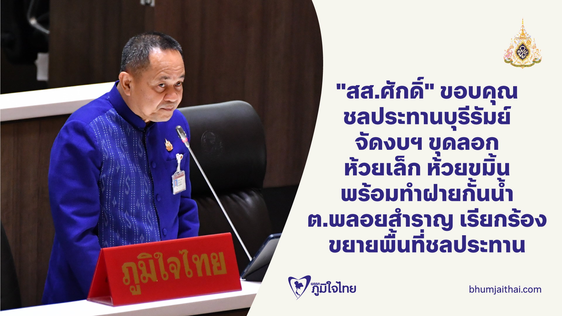 วันที่ 3 ก.ย.2568 นายศักดิ์ ซารัมย์ สมาชิกสภาผู้แทนราษฎรจังหวัดบุรีรัมย์ เขต 6 พรรคภูมิใจไทย หารือประธานสภาผู้แทนราษฎร เรื่องที่เคยหารือในเดือนกรกฎาคม 2567 ถึงปัญหาภัยแล้ง การขาดแคลนน้ำ เพื่อสาธารณูปโภค และการเกษตร แหล่งน้ำตื้นเขินตามคูคลองธรรมชาติ ไม่มีระบบชลประทาน ขอขอบคุณหน่วยงานชลประทานบุรีรัมย์ ที่ได้จัดสรรงบประมาณขุดลอกห้วยเล็ก ห้วยขมิ้น ตลอดจนทําฝายกั้นน้ำในตําบลพลอยสําราญ อําเภอคูเมือง จังหวัดบุรีรัมย์ ทําให้แก้ปัญหาภัยแล้งได้ในระดับหนึ่ง เพื่อให้โครงการแก้ไขปัญหาภัยแล้ง ดำเนินการต่อเพิ่มพื้นที่สํารองน้ำไว้ให้ประชาชนได้ใช้ในฤดูแล้ง