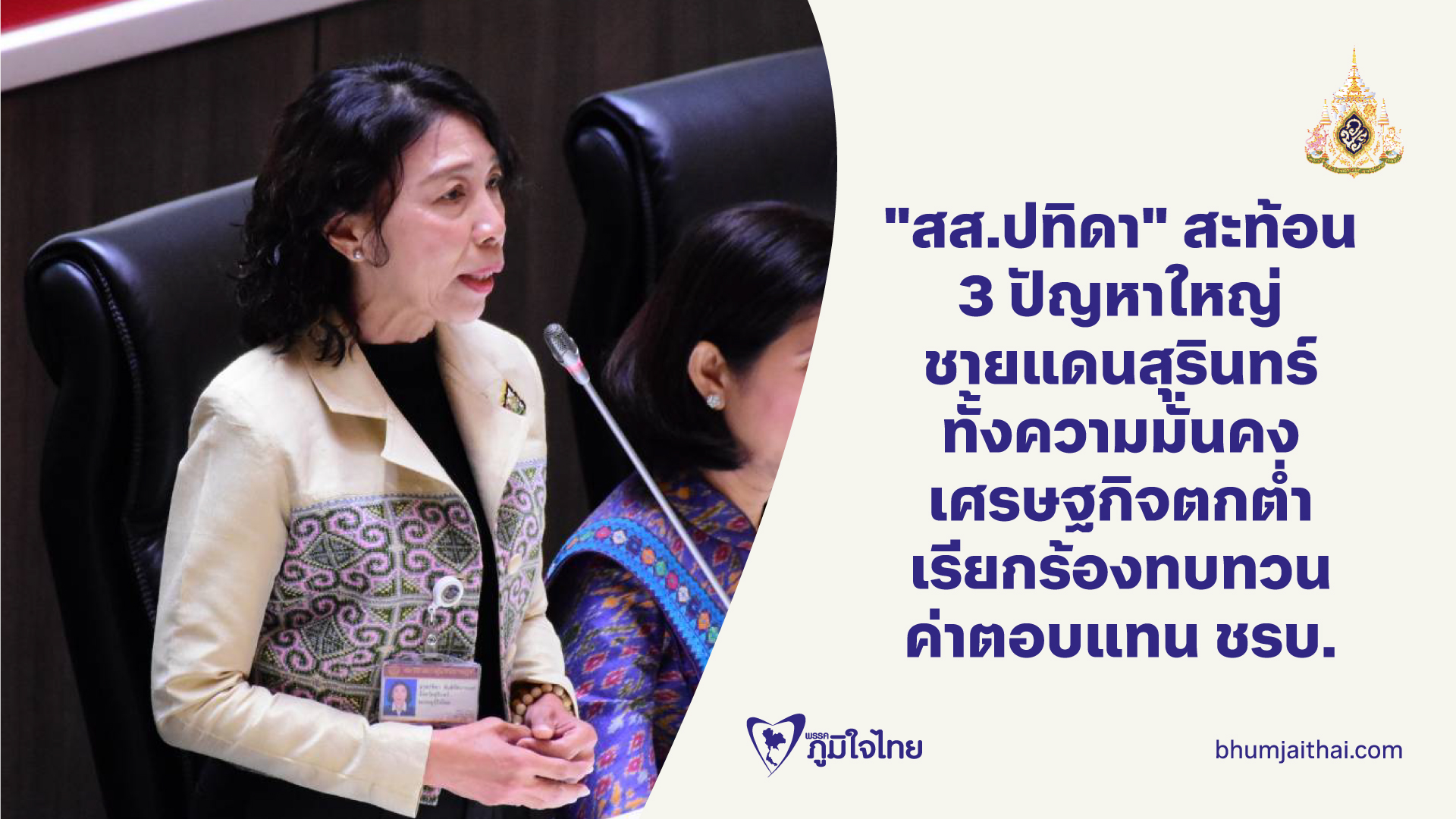 "สส.ปทิดา" สะท้อน 3 ปัญหาใหญ่ชายแดนสุรินทร์ ทั้งความมั่นคง-เศรษฐกิจตกต่ำ เรียกร้องทบทวนค่าตอบแทน ชรบ. ถามหาความชัดเจนการสื่อสารจากภาครัฐถึงมาตรการช่วยเหลือ