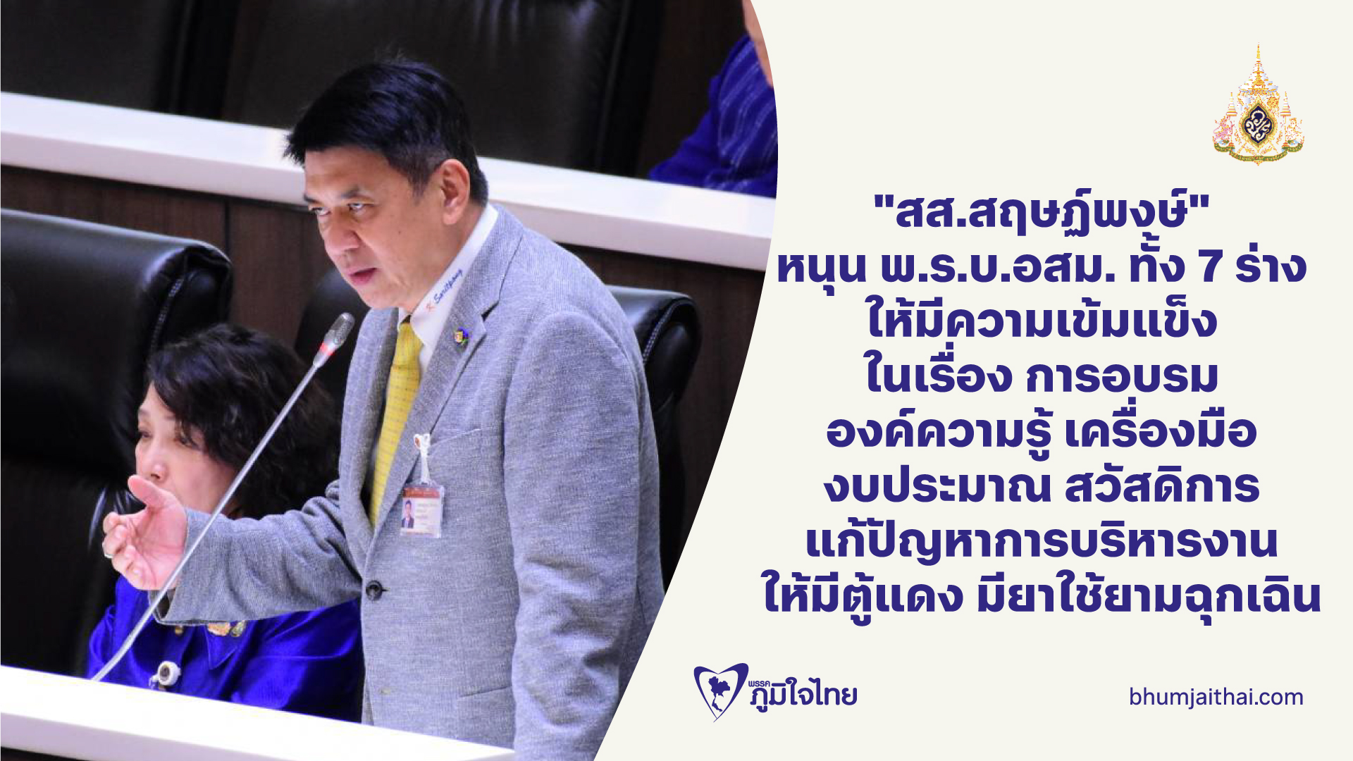 "สส.สฤษฏ์พงษ์" อภิปราย หนุน พ.ร.บ.อสม. ทั้ง 7 ร่าง ให้มีความเข้มแข็ง ในเรื่องการอบรม องค์ความรู้ เครื่องมือ งบประมาณ สวัสดิการ ฝากแก้ปัญหาการบริหารงาน ขัดแย้งกับองค์กรปกครองส่วนท้องถิ่น และให้มีตู้แดง มียาใช้ยามฉุกเฉิน