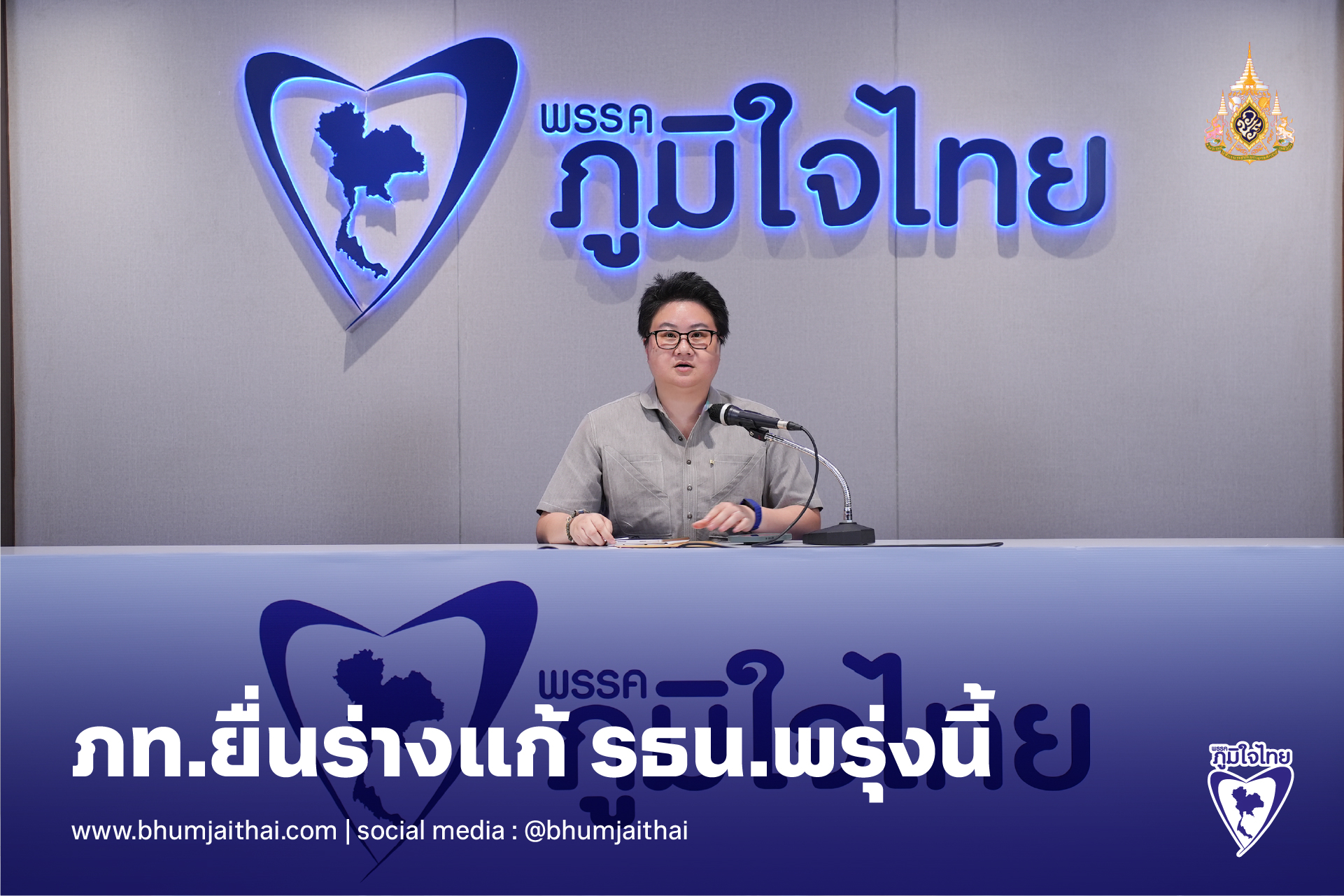 โฆษกภูมิใจไทย เผย ยื่นร่างแก้ รธน.พรุ่งนี้ เตรียมหารือ "วันนอร์-วิป 3 ฝ่าย" เคาะวันแถลงนโยบาย