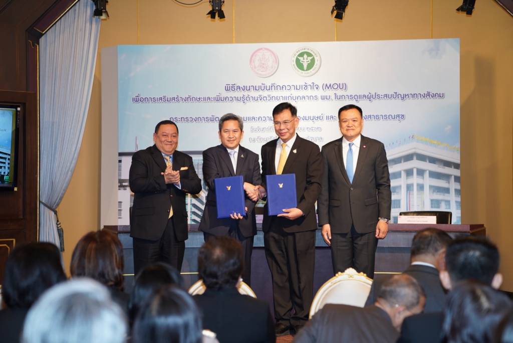 23 กันยายน 2562 เวลา 11:19"หมอหนู" นำ สธ.จับมือ พม. ทำ MOU ดูแลสุขภาพจิตผู้มีปัญหาสังคมวันนี้ (23 ก.ย.2562) ที่ทำเนียบรัฐบาล มีพิธีลงนามบันทึกความเข้าใจระหว่างกระทรวงสาธารณสุข และกระทรวงพัฒนาสังคมและความมั่นคงของมนุษย์ ในการพัฒนาบุคลากร เพื่อดูแลผู้ประสบปัญหาทางสังคม ผู้ร่วมพิธีประกอบไปด้วย นายอนุทิน ชาญวีรกูล รองนายกรัฐมนตรีและรัฐมนตรีว่าการกระทรวงสาธารณสุข, นายจุติ ไกรฤกษ์ รัฐมนตรีว่าการกระทรวงพัฒนาสังคมและความมั่นคงของมนุษย์, นายแพทย์สุขุม กาญจนพิมาย ปลัดกระทรวงสาธสรณสุข และนายปรเมธี วิมลศิริ ปลัดกระทรวงพัฒนาสังคมฯ นายอนุทิน กล่าว่า ความร่วมมือของกระทรวงสาธารณสุขและกระทรวงการพัฒนาสังคมและความมั่นคงของมนุษย์ ในฐานะกระทรวงที่ดูแลงานด้านสังคม ในครั้งนี้ จะก่อให้เกิดประโยชน์ต่อประชาชนและสังคมไทยอย่างมาก เพราะจะมีแนวทางการฟื้นฟูสภาพจิตใจที่ชัดเจน ดูแลจิตใจของกลุ่มเป้าหมายได้อย่างใกล้ชิด เพื่อคุณภาพชีวิตที่ดีขึ้นของผู้ประสบปัญหาทางสังคม ซึ่งบุคคลการของกระทรวงการพัฒนาสังคมและความมั่นคงของมนุษย์ จะได้รับการพัฒนาต่อยอดความรู้และทักษะด้านจิตวิทยา เพิ่มทักษะดูแลกลุ่มเป้าหมายที่มีอาการทางจิต สามารถแลกเปลี่ยนความรู้ให้บุคลากรอื่น ๆ ในหน่วยงานได้ ทั้งนี้ กระทรวงสาธารณสุขพร้อมสนับสนุนบุคลากรด้านจิตวิทยา และด้านที่เกี่ยวข้องอย่างครอบคลุม รวมทั้งจัดสรรจิตแพทย์ในพื้นที่ให้เป็นที่ปรึกษาแก่เจ้าหน้าที่ของสถานสงเคราะห์เพื่อช่วยเหลือกลุ่มเป้าหมายที่มีอาการทางจิตต่อไป "ดีใจที่ได้ร่วมมือกับนายจุติ ไกรฤกษ์ อย่าไปคิดว่าอยู่ต่างพรรคแล้วจะทำงานกันไม่ได้ เวลานี้ อะไรที่ทำแล้วดีกับประชาชน ขอให้ร่วมมือกัน เพื่อประโยชน์สูงสุดของคนไทย" นายจุติ กล่าวว่า นับเป็นจุดเริ่มต้นของความร่วมมือระหว่างกระทรวงสาธารณสุข และกระทรวงการพัฒนาสังคมและความมั่นคง ของมนุษย์ (พม.) เพื่อเพิ่มประสิทธิภาพและยกระดับการให้บริการประชาชนและผู้รับบริการอย่างมีประสิทธิภาพ ทั้งนี้ กระทรวง พม. มีบุคลากร จำนวน 1,932 คน ที่ปฏิบัติงาน ดูแลกลุ่มเป้าหมาย หรือ กลุ่มเด็ก สตรี คนพิการ ผู้สูงอายุ จำนวน 109,102 คน ซึ่งเป็นสัดส่วนในการดูแลที่ค่อนข้างมาก และยากลำบากทั้งกับสภาวะด้านการปฏิบัติงานและสภาวะทางจิตใจของบุคลากร และผู้รับบริการ จึงได้ร่วมกับกระทรวงสาธารณสุข ในการบูรณาการช่วยเหลือระหว่างกัน เพื่อพัฒนาการปฏิบัติงาน ให้มีประสิทธิภาพสูงสุด แชร์บทความนี้: