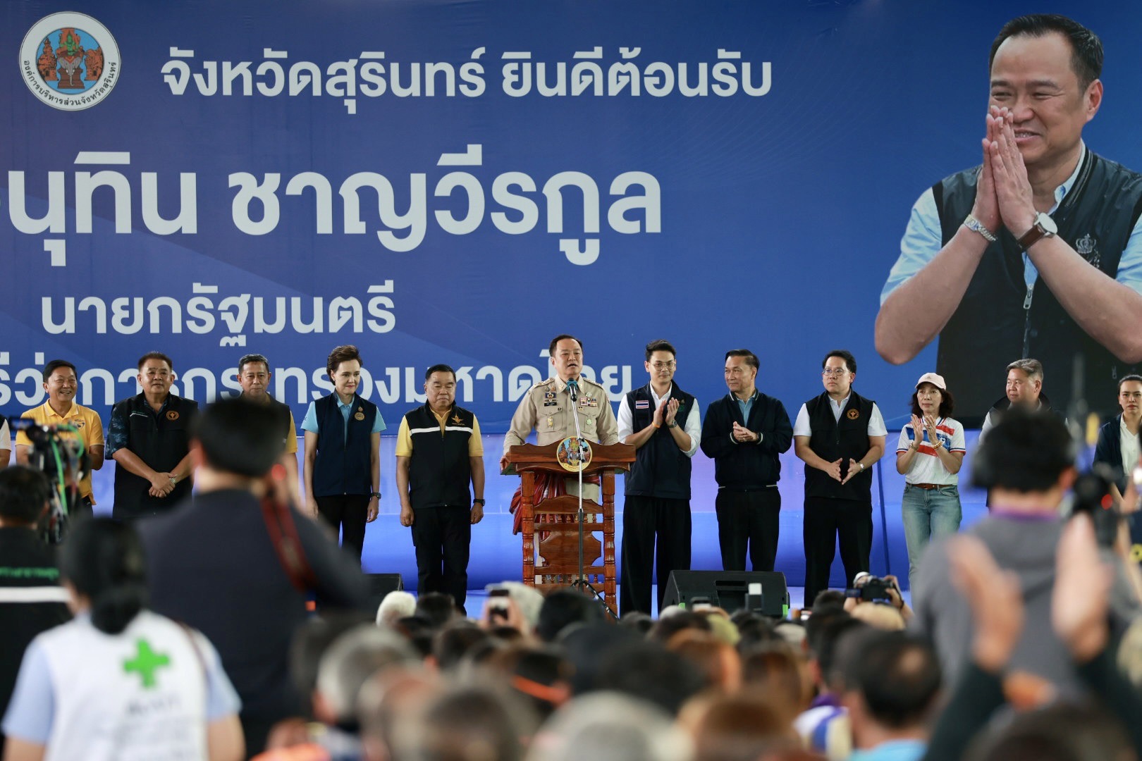 วันที่ 3 ตุลาคม 2568 ที่อาคารโดมโรงเรียนพนมดงรักวิทยา อำเภอพนมดงรัก จังหวัดสุรินทร์ นายอนุทิน ชาญวีรกูล นายกรัฐมนตรีและรัฐมนตรีว่าการกระทรวงมหาดไทย นำคณะรัฐมนตรี ข้าราชการระดับสูง และผู้แทนหน่วยงานที่เกี่ยวข้อง ลงพื้นที่ตรวจเยี่ยมและให้กำลังใจประชาชนที่ได้รับผลกระทบจากเหตุการณ์ความไม่สงบชายแดนไทย–กัมพูชา