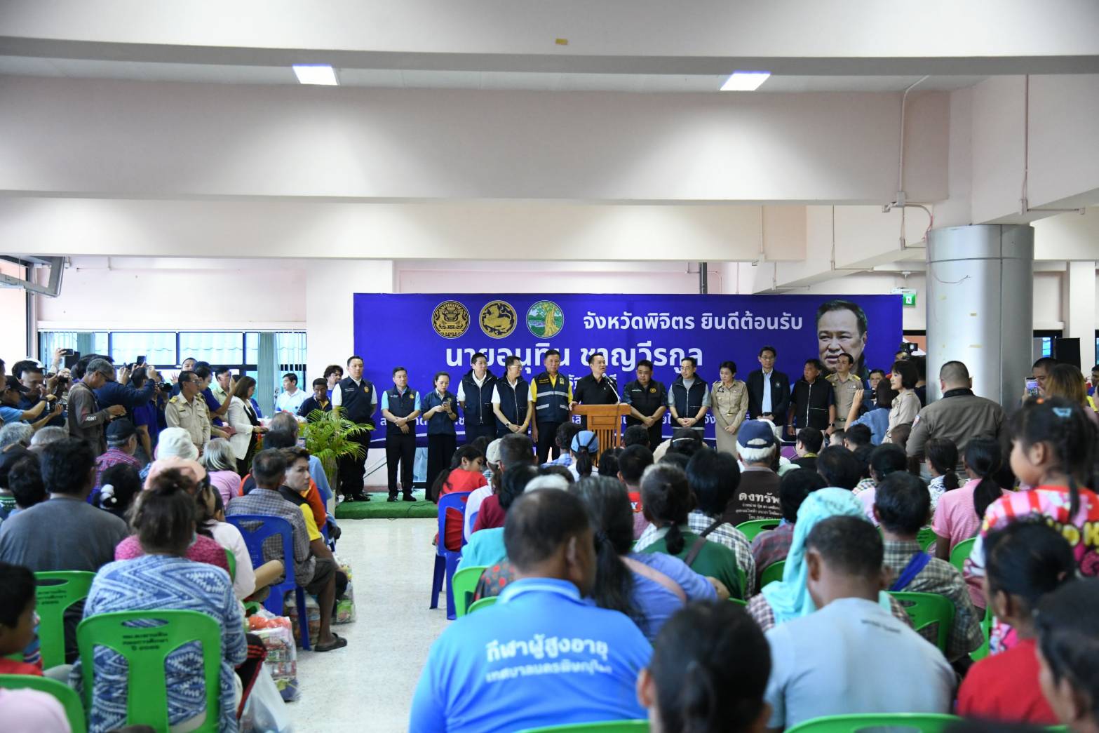 วันที่ 10 ตุลาคม 2568 เวลา 14.00 น. นายอนุทิน ชาญวีรกูล นายกรัฐมนตรีและรัฐมนตรีว่าการกระทรวงมหาดไทย พร้อมคณะ ลงพื้นที่ติดตามการช่วยเหลือและให้กำลังใจประชาชนผู้ประสบภัยน้ำท่วม ณ โรงเรียนเทศบาลตะพานหินวิทยาคาร อ.ตะพานหิน จ.พิจิตร