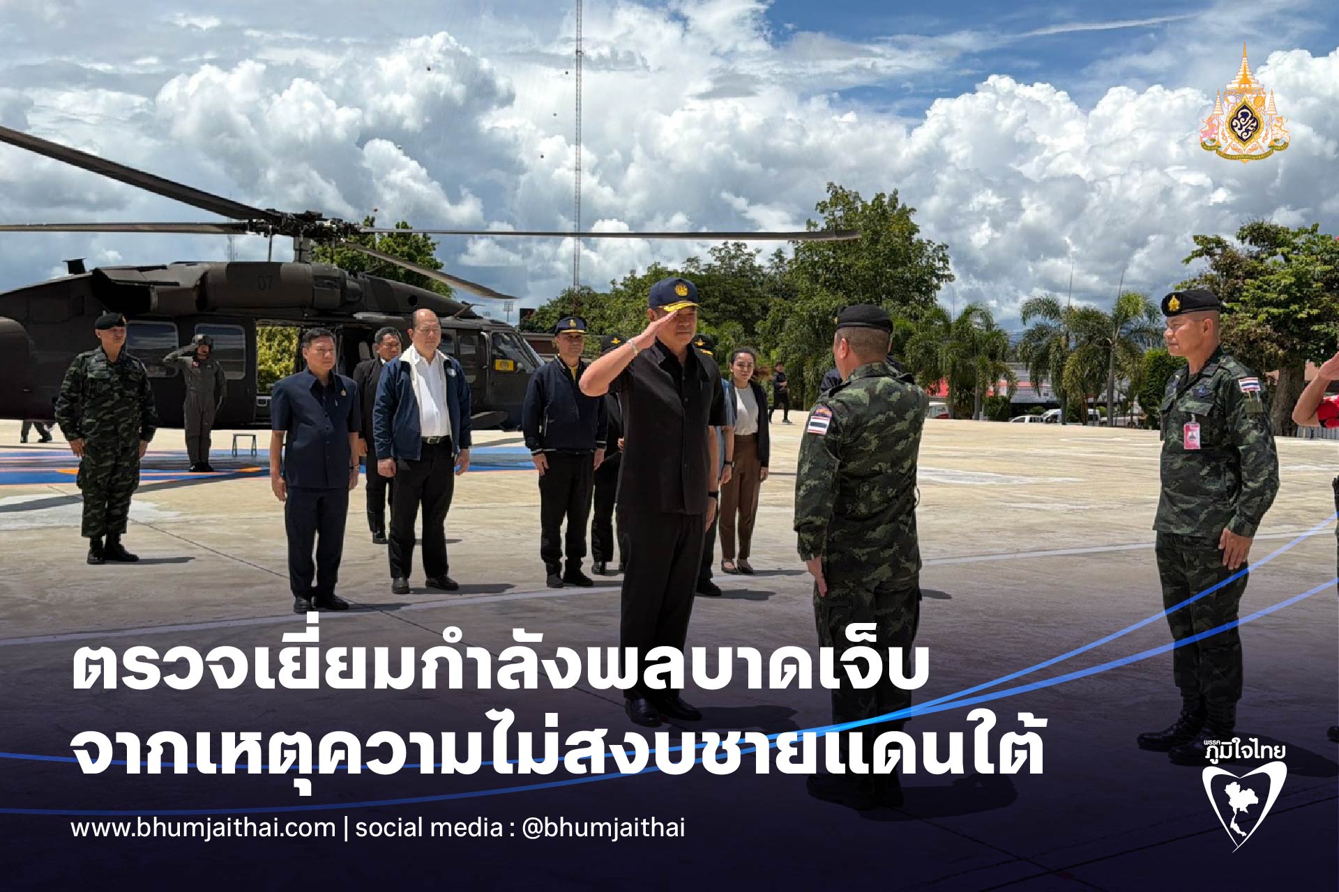 "อนุทิน" ลงพื้นที่ชายแดนใต้ ตรวจเยี่ยมกำลังพลบาดเจ็บจากเหตุความไม่สงบ ย้ำรัฐบาลให้ความสำคัญสูงสุดต่อความปลอดภัยประชาชนและอธิปไตยของชาติ