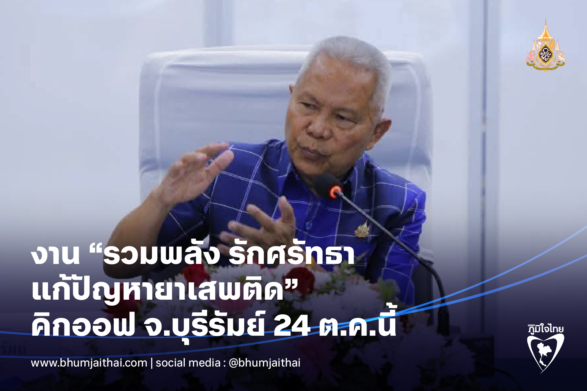 งาน “รวมพลัง รักศรัทธา แก้ปัญหายาเสพติด” เตรียมคิกออฟ 24 ตุลาคมนี้ ที่บุรีรัมย์