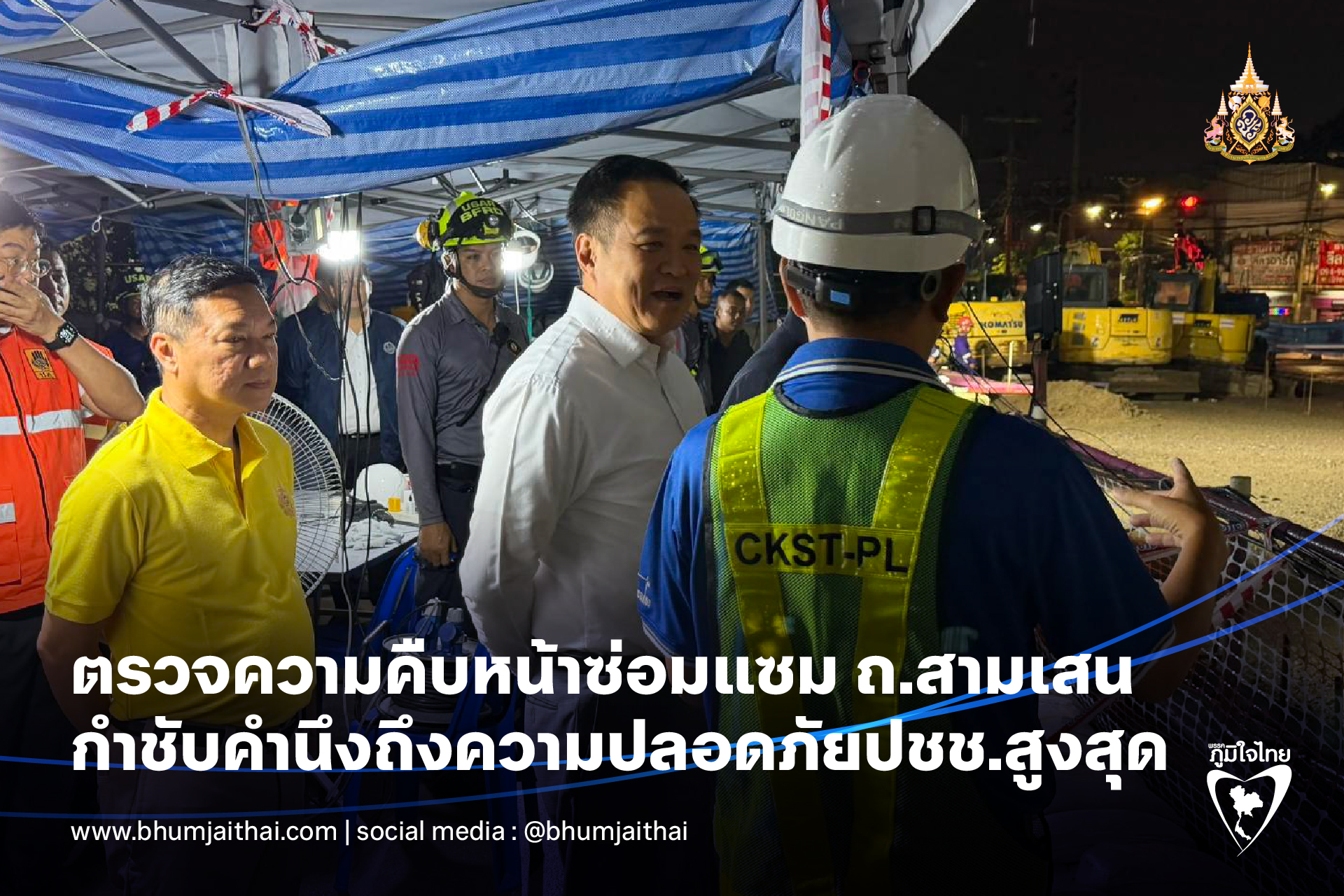 “อนุทิน” ลงพื้นที่ตรวจความคืบหน้าถนนสามเสนทรุด รอบดึก กำชับ ซ่อมแซมต้องคำนึงถึงความปลอดภัยประชาชนสูงสุด