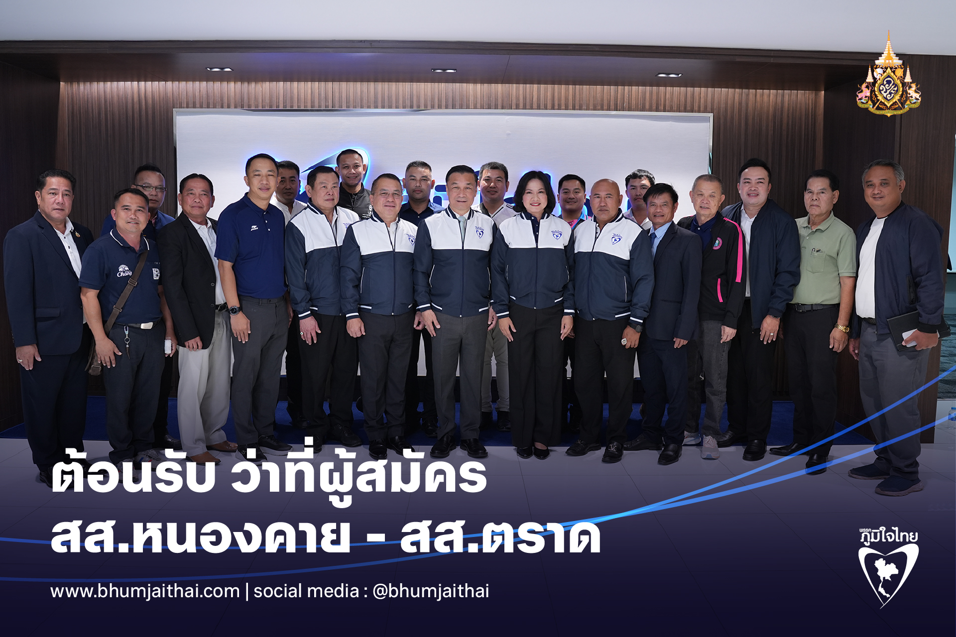 วันที่ 22 ตุลาคม 2568 ที่พรรคภูมิใจไทย นายทรงศักดิ์ ทองศรี รัฐมนตรีช่วยว่าการกระทรวงมหาดไทย ในฐานะแกนนำพรรคภูมิใจไทย พร้อมด้วย นายสิรภพ ดวงสอดศรี ผู้อำนวยการพรรคภูมิใจไทย กรรมการผู้ช่วยรัฐมนตรี, นายบุญลือ ประเสริฐโสภา อดีต รมช.ศึกษาธิการ, นพ.มารุต มัสยวาณิช แกนนำพรรคภูมิใจไทย ให้การต้อนรับ 2 ว่าที่ผู้สมัคร สส.หนองคาย พล.ต.ท.ไพศาล ลือสมบูรณ์ หรือผู้การเต๋อ เขต 1, ทพญ.จิดาภา สุนทรธนากุล เขต 2 ที่มาสมัครสมาชิกพรรคภูมิใจไทย