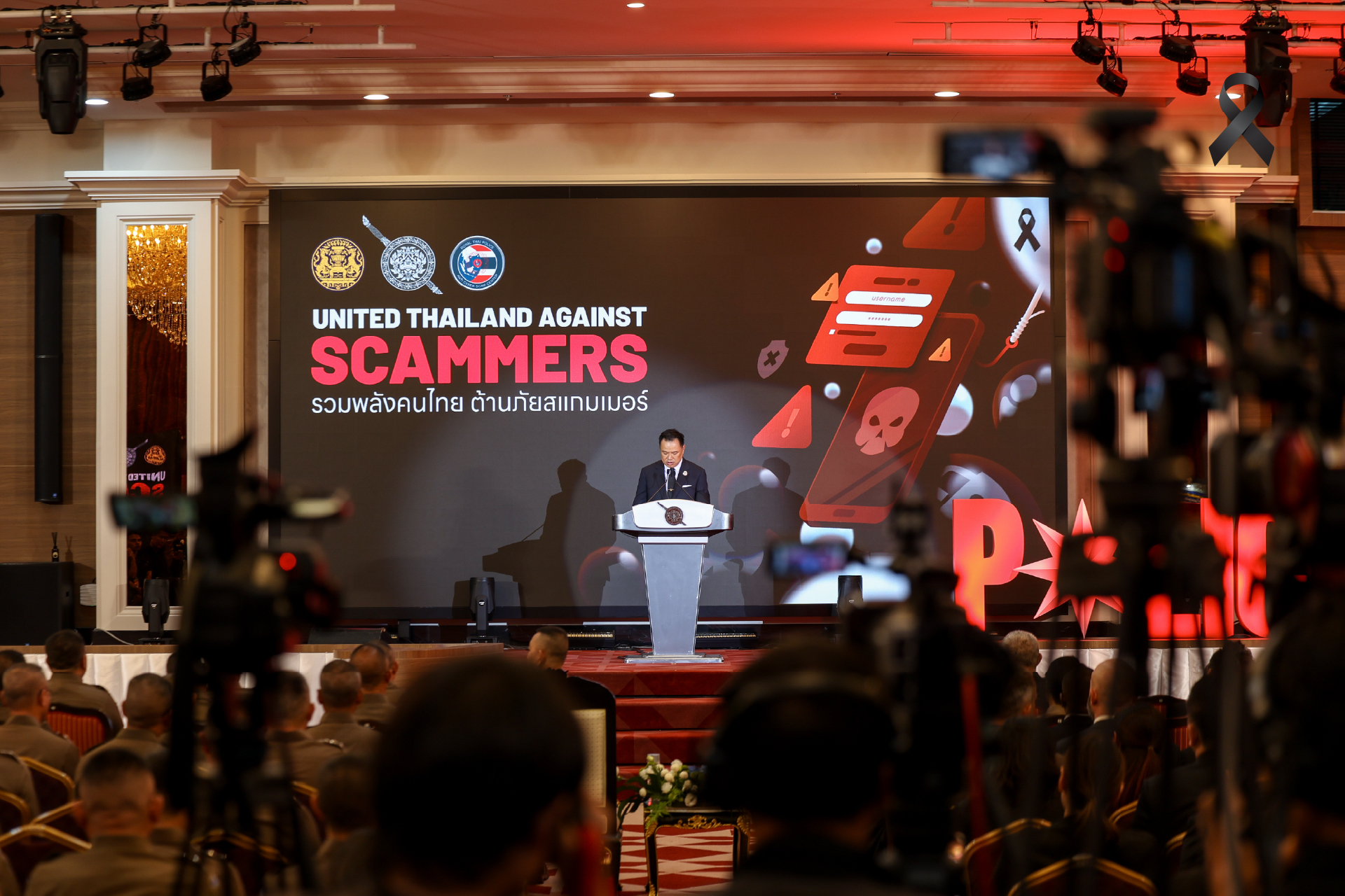 วันที่ 10 พฤศจิกายน 2568 เวลา 10.30 น. ที่สำนักงานตำรวจแห่งชาติ นายอนุทิน ชาญวีรกูล นายกรัฐมนตรีและรัฐมนตรีว่าการกระทรวงมหาดไทย เป็นประธานการแถลงข่าว “United Thailand Against Scammers รวมพลังคนไทยต้านภัยสแกมเมอร์” พร้อมมอบนโยบายการปราบปรามอาชญากรรมทางเทคโนโลยี โดยมีหน่วยงานด้านความมั่นคง ภาครัฐ เอกชน และสื่อมวลชนเข้าร่วมอย่างคับคั่ง