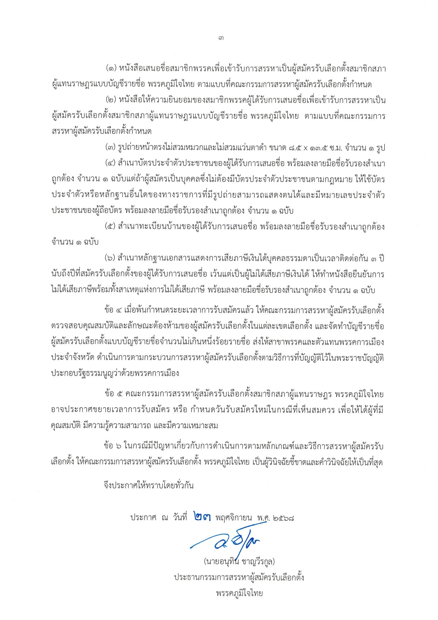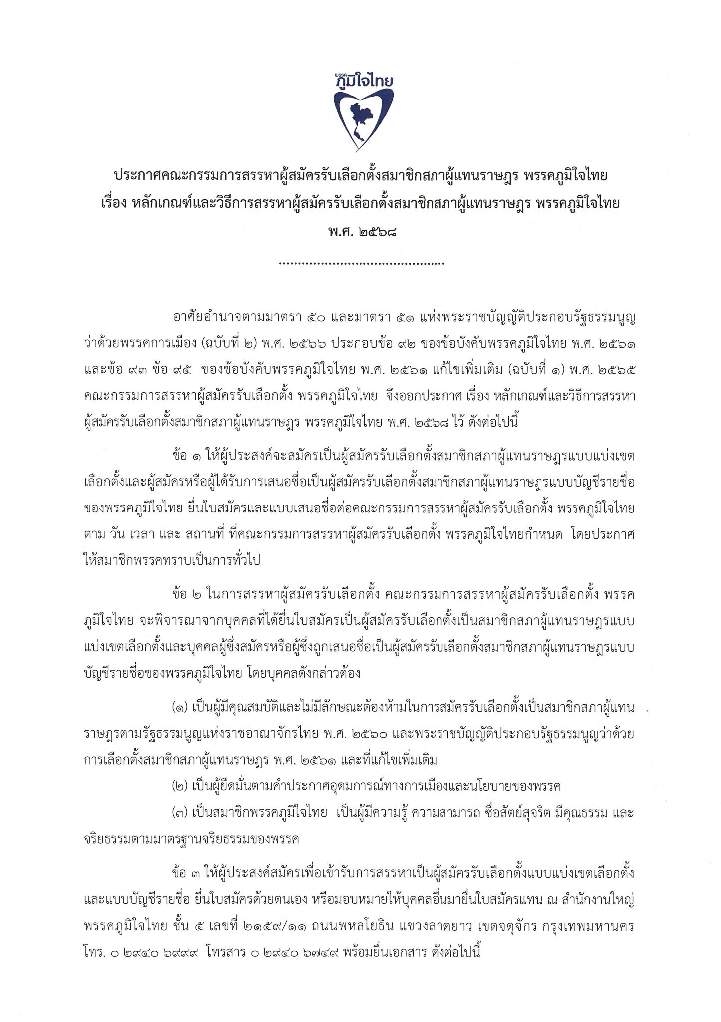 23 พฤศจิกายน 2568 เวลา 17:21ประกาศคณะกรรมการสรรหาผู้สมัครรับเลือกตั้งสมาชิกสภาผู้แทนราษฎร พรรคภูมิใจไทย เรื่อง หลักเกณฑ์และวิธีการสรรหาผู้สมัครรับเลือกตั้งสมาชิกสภาผู้แทนราษฎร พรรคภูมิใจไทย พ.ศ. ๒๕๖๘ แชร์บทความนี้:
