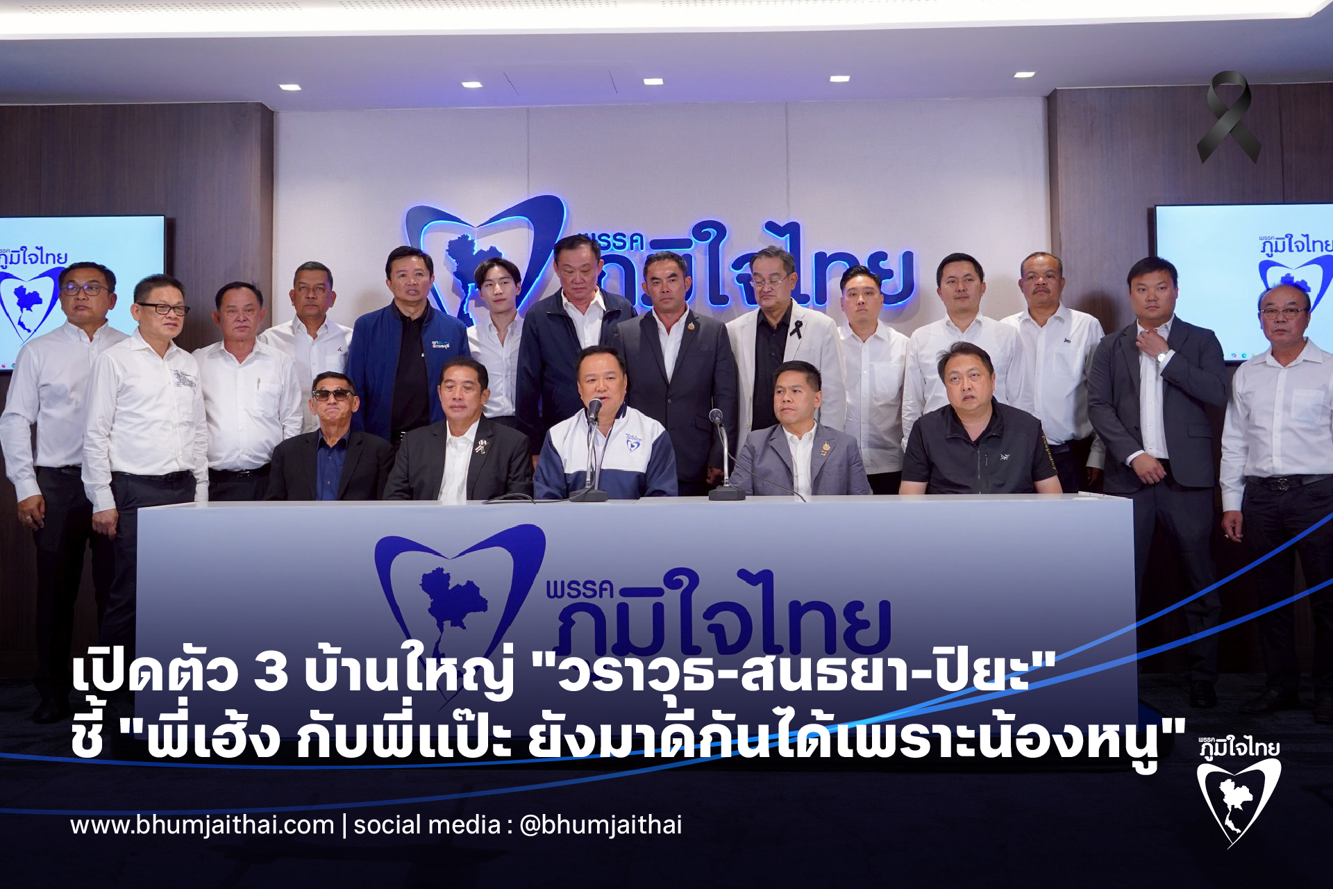 23 พฤศจิกายน 2568 ที่ทำการพรรคภูมิใจไทย ภายหลังการหารือถึงแนวทางร่วมกันทางการเมือง นายอนุทิน ชาญวีรกูล นายกรัฐมนตรี และรัฐมนตรีว่าการกระทรวงมหาดไทย ในฐานะหัวหน้าพรรคภูมิใจไทย นำกลุ่มการเมืองประกอบด้วย นายวราวุธ ศิลปอาชา หัวหน้าพรรคชาติไทยพัฒนา, นายนิกร จำนง ผู้อำนวยการพรรคชาติไทยพัฒนา, นายสนธยา คุณปลื้ม แกนนำกลุ่มบ้านใหญ่จังหวัดชลบุรี พร้อมด้วย นายปิยะ ปิตุเตชะ ร่วมกันแถลงข่าว