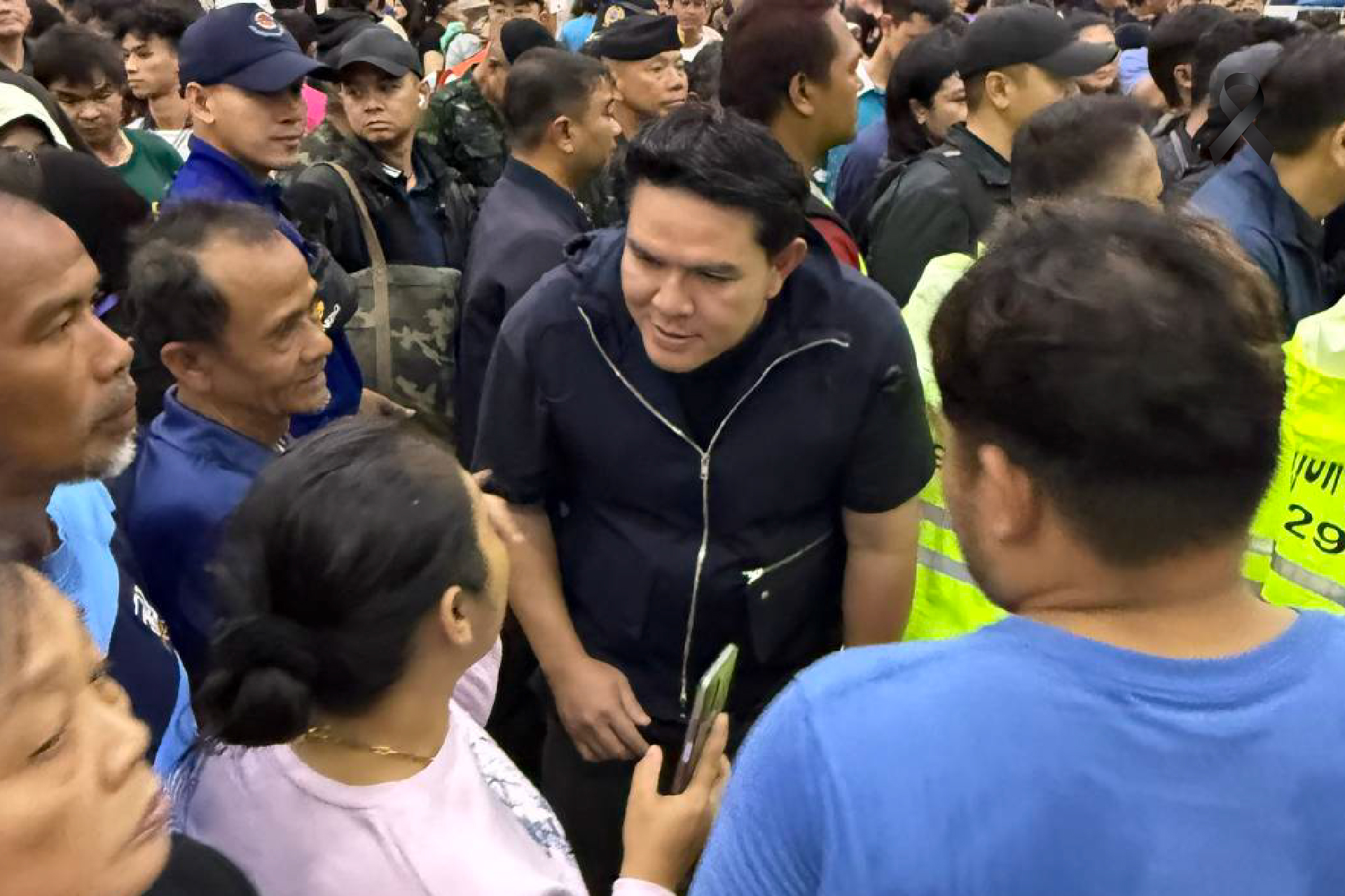 ต่อมาได้ออกเดินทางด้วยรถยนต์ จากมณฑลทหารบกที่ 42 ไปยังศูนย์พักพิงชั่วคราว อาคารศูนย์กีฬามหาวิทยาลัยสงขลานครินทร์ (ม.อ.)เพื่อเยี่ยมให้กำลังใจแก่ผู้ประสบภัย ก่อนลงพื้นที่ชุมชน ในเขตเทศบาลนครหาดใหญ่