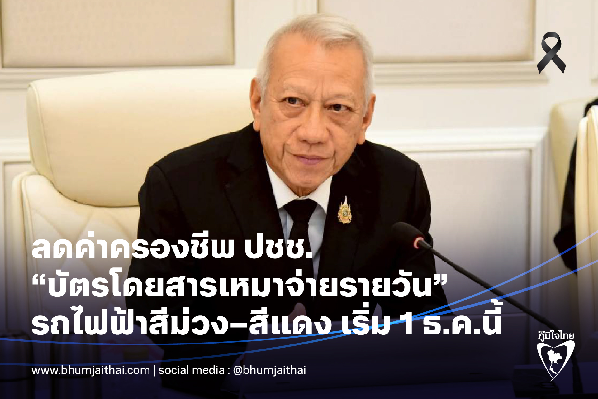 เดินหน้านโยบายรัฐบาล ลดค่าครองชีพประชาชน “บัตรโดยสารเหมาจ่ายรายวัน” รถไฟฟ้าสายสีม่วง–สายสีแดง เริ่ม 1 ธ.ค.นี้