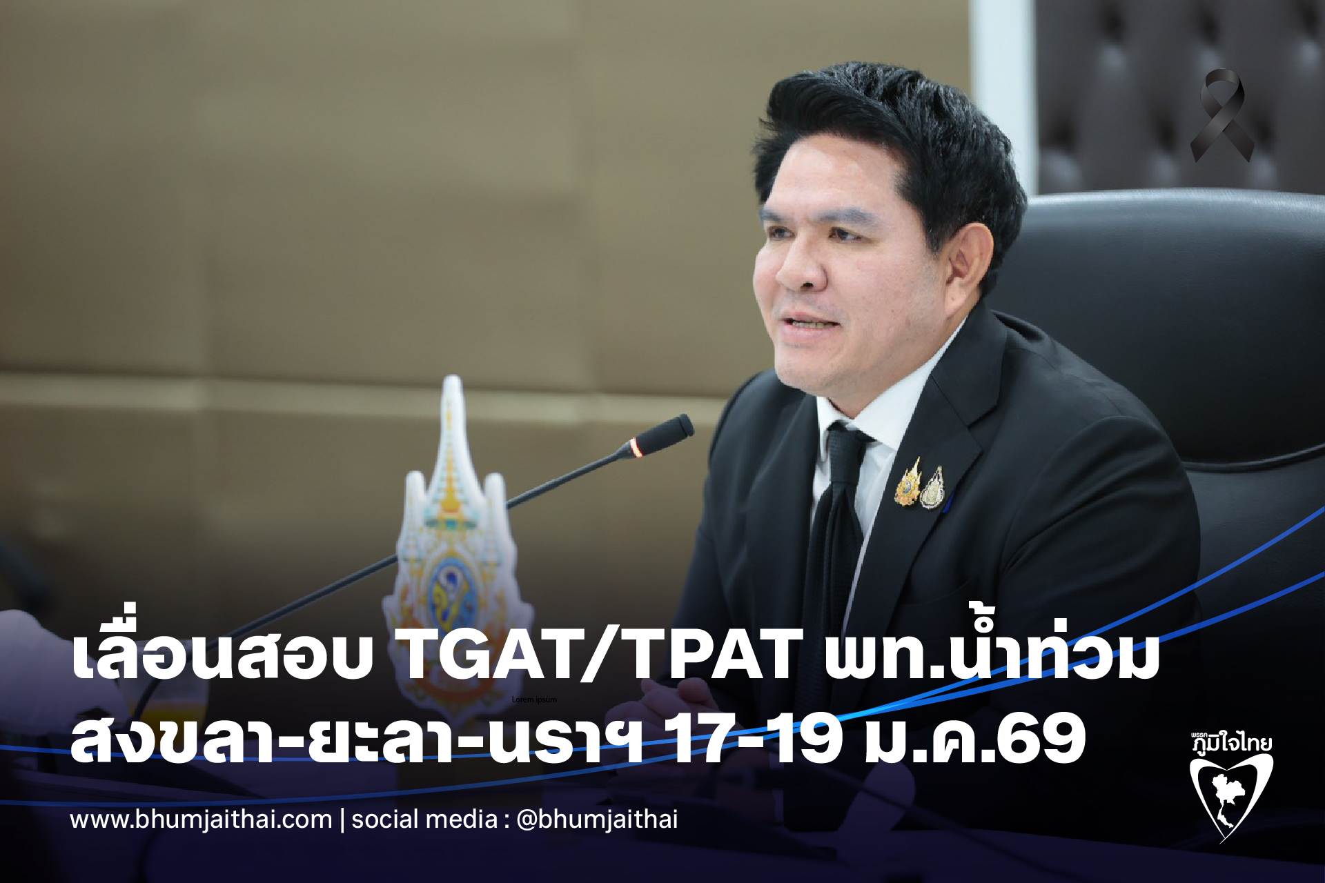 เลื่อนสอบ TGAT/TPAT พื้นที่น้ำท่วม สงขลา-ยะลา-นราธิวาส 17-19 ม.ค.69