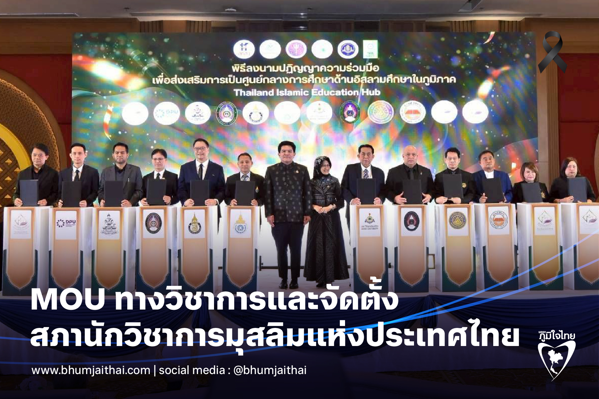 ว่าด้วยความร่วมมือทางวิชาการและการจัดตั้งสภานักวิชาการมุสลิมแห่งประเทศไทย พร้อมการเปิดตัวโครงการ “Thailand Islamic Education Hub” ในวันนี้ ซึ่งเป็นจุดเริ่มต้นสำคัญของการขับเคลื่อนประเทศไทย สู่การเป็นศูนย์กลางด้านอิสลามศึกษาในภูมิภาค ประเทศไทยของเราเป็นสังคมพหุวัฒนธรรม ที่ประชาชนต่างศาสนาอยู่ร่วมกัน