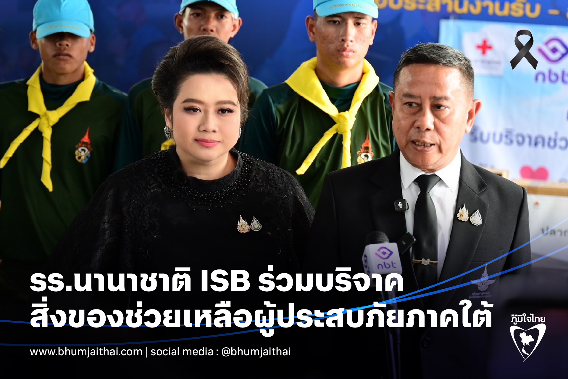 นางอุษา สมบูรณ์ ผู้อำนวยการโรงเรียนนานาชาติ ISB กล่าวว่า หลังจากทราบข่าวจาก NBT ทางโรงเรียน สมาคมผู้ปกครองและเครือข่าย ตั้งใจนำสิ่งของมาร่วมบริจาค เพื่อเป็นส่วนหนึ่งในการช่วยเหลือผู้ประสบอุทกภัยในพื้นที่ภาคใต้ ส่วนน้อง ๆ นักเรียน ต่างช่วยลำเลียงสิ่งของขึ้นรถ พร้อมส่งกำลังใจไปยังผู้ประสบภัยด้วย ทั้งนี้ สิ่งของต่าง ๆ ได้ลำเลียงไปยังพิพิธภัณฑ์กองทัพอากาศและการบินแห่งชาติ (ดอนเมือง) เพื่อนำส่งต่อไปยังพื้นที่ประสบภัยต่อไป