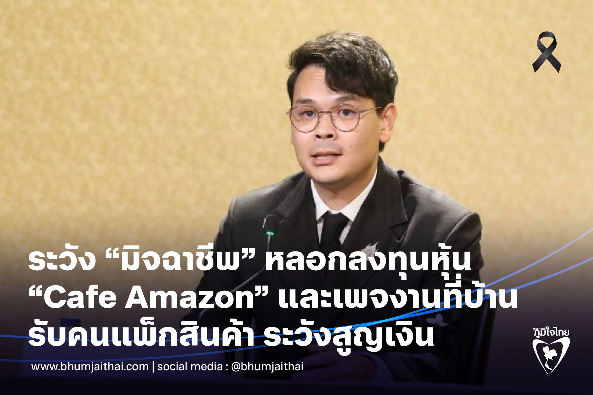 เตือนประชาชนระวัง “มิจฉาชีพ” หลอกลงทุนหุ้น “Cafe Amazon” และเพจงานที่บ้าน รับคนแพ็กสินค้า ระวังสูญเงิน และข้อมูลส่วนบุคคล