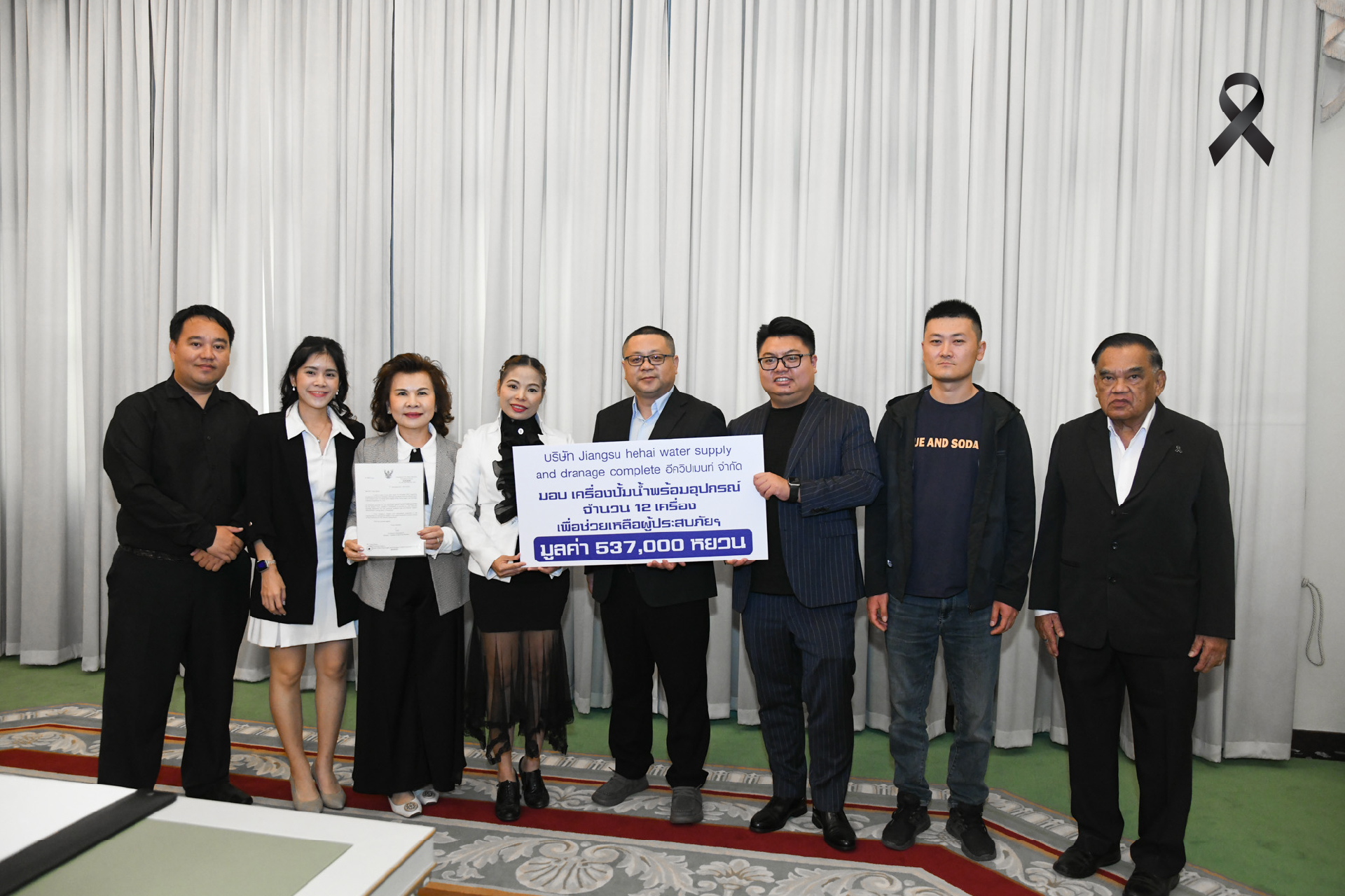 รับมอบเครื่องปั๊มน้ำพร้อมอุปกรณ์ จากตัวแทนบ.เอกชนจีน นำไปช่วยผู้ประสบอุทกภัยในพื้นที่ต่าง ๆ