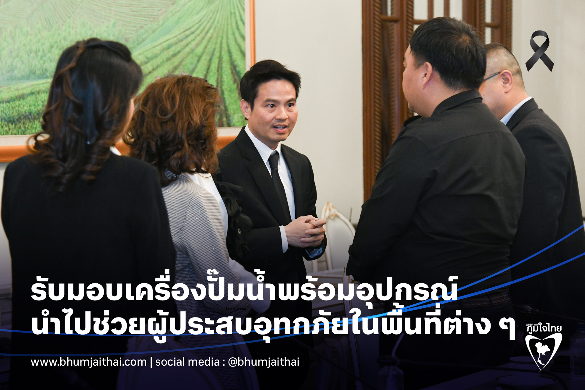 วันนี้ (8 ธันวาคม 2568) เวลา 15.30 น. ณ ห้องสีเขียว ตึกไทยคู่ฟ้า ทำเนียบรัฐบาล นายอนุทิน ชาญวีรกูล นายกรัฐมนตรีและรัฐมนตรีว่าการกระทรวงมหาดไทย มอบนายภราดร ปริศนานันทกุล รัฐมนตรีประจำสำนักนายกรัฐมนตรี พร้อมด้วยนายสิริพงศ์ อังสกุลเกียรติ โฆษกประจำสำนักนายกรัฐมนตรีรับมอบเครื่องปั๊มน้ำพร้อมอุปกรณ์ จำนวน 12 เครื่อง มูลค่า 537,000 หยวน จากผู้แทนบริษัท Jiangsu Hehai Water Supply and Drainage Complete Equipment Co., Ltd., เพื่อนำไปช่วยเหลือผู้ประสบอุทกภัยน้ำท่วมในพื้นที่ต่าง ๆ ของประเทศไทย