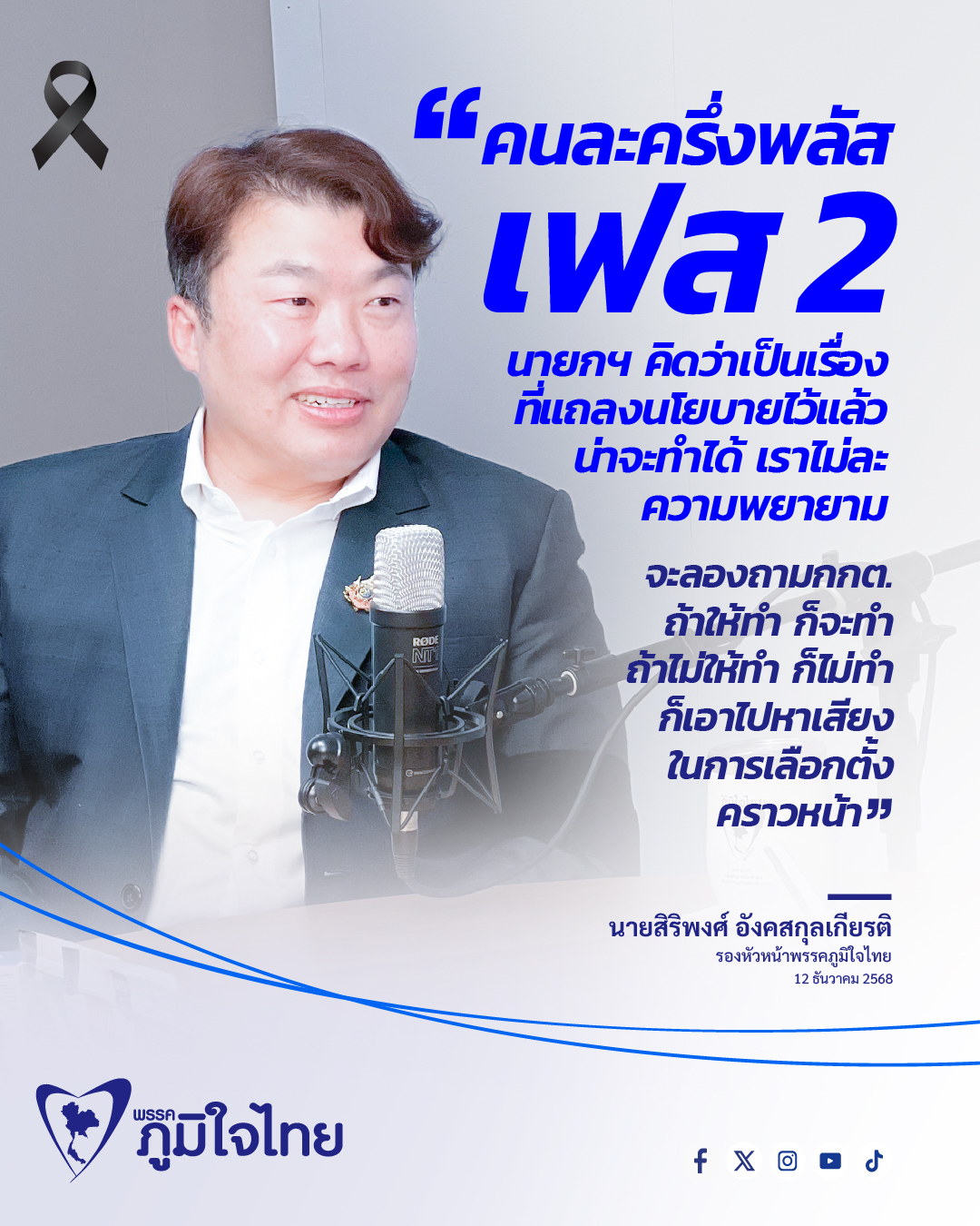 นายสิริพงศ์ อังคสกุลเกียรติ รองหัวหน้าพรรคภูมิใจไทย กล่าวถึงสถานการณ์หลังการยุบสภา โดยยืนยันว่าการบริหารราชการแผ่นดินของรัฐบาลรักษาการจะไม่สะดุด สามารถดำเนินการได้ตามปกติ มีประชาชนสอบถามกันมากคือโครงการ คนละครึ่งพลัส เฟส 2 จะทำได้หรือไม่ ซึ่งเตรียมหารือกับคณะกรรมการการเลือกตั้ง (กกต.) เนื่องจากเป็นนโยบายที่เคยแถลงต่อรัฐสภา และได้ดำเนินการเฟส 1 มาแล้ว รวมถึงมีการตระเตรียมระบบไว้แล้ว โดยเฉพาะระบบ Upskill/Reskill ซึ่งถือเป็นส่วนหนึ่งของแพ็กเกจที่ทำอย่างต่อเนื่อง ก็ต้องมาพูดคุยกันกับ กกต.