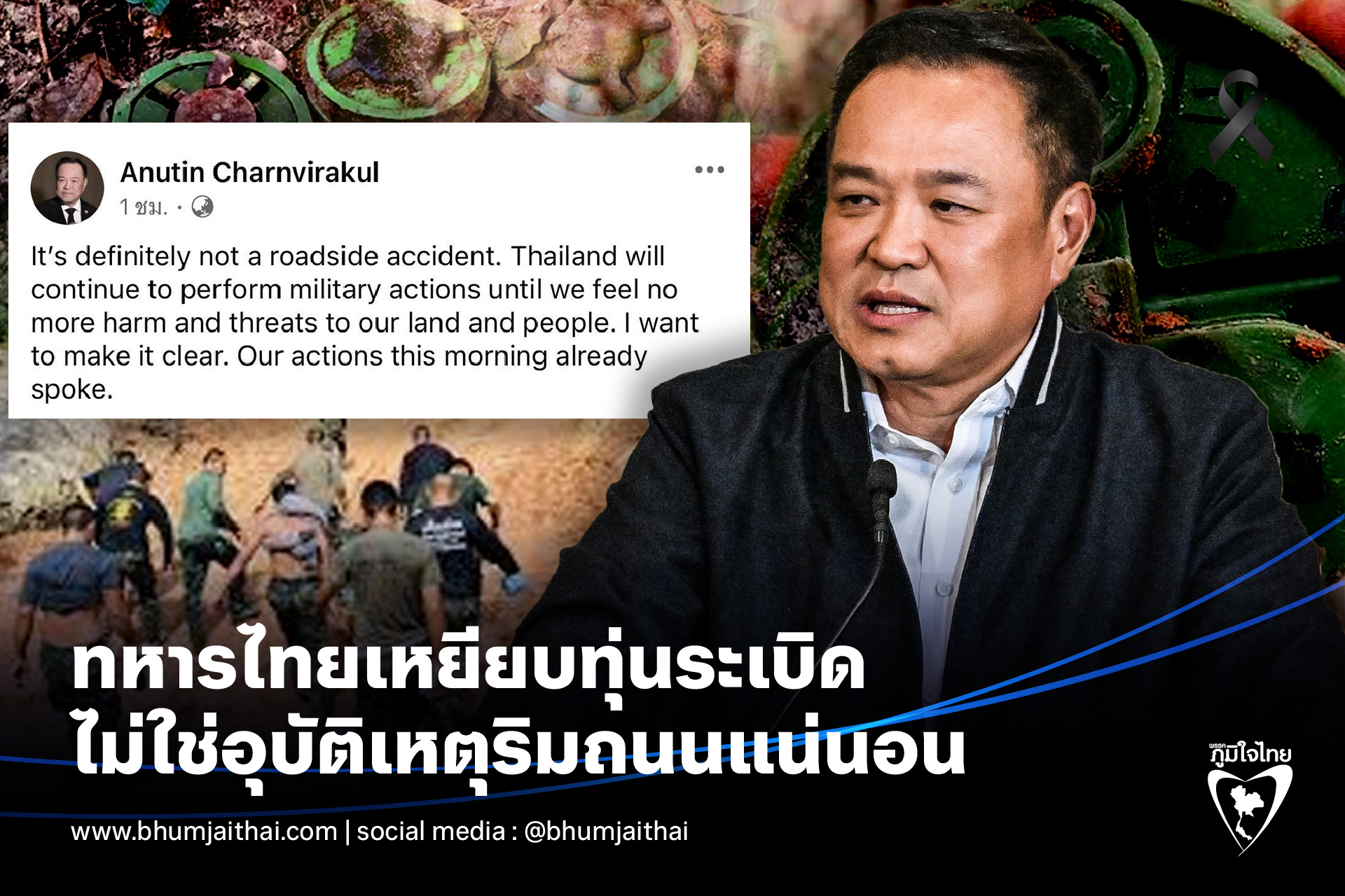 "อนุทิน" ยืนยันทหารไทยไม่ได้บาดเจ็บจากอุบัติเหตุข้างถนน ไทยจะดำเนินการทางทหารจนรู้สึกว่าจะไม่มีภัยคุกคามต่อแผ่นดินและประชาชนอีกต่อไป