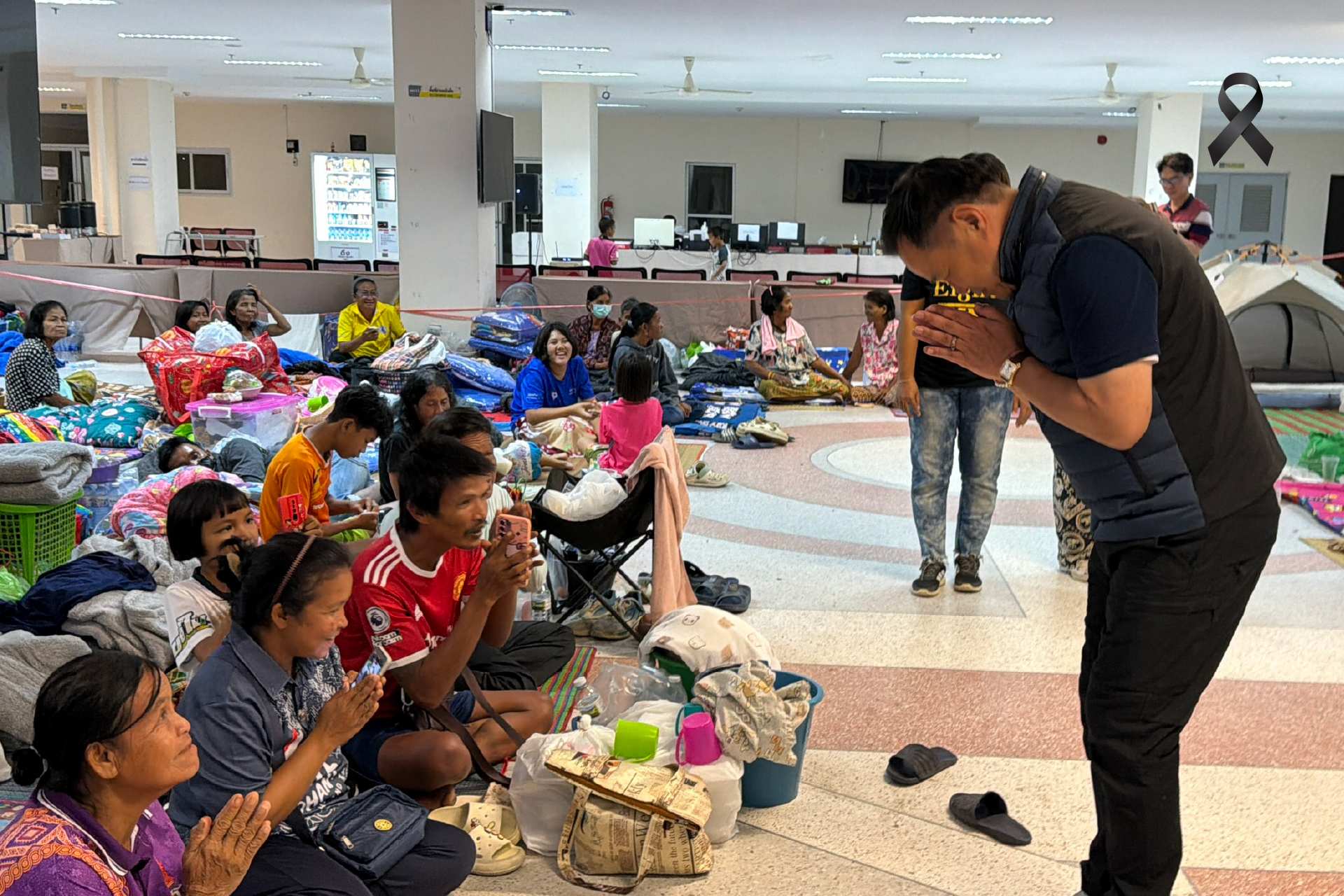 นายกรัฐมนตรีพร้อมคณะได้เดินตรวจเยี่ยมพื้นที่โดยรอบศูนย์พักพิง เพื่อติดตามความพร้อมในการรองรับผู้พักพิง ทั้งด้านที่พัก อาหาร น้ำดื่ม การแพทย์ และการรักษาความปลอดภัย โดยได้พูดคุยสอบถามสารทุกข์สุขดิบของประชาชนอย่างใกล้ชิด พร้อมให้กำลังใจผู้ที่ได้รับผลกระทบจากสถานการณ์ความไม่สงบ ให้มีความเชื่อมั่นว่ารัฐบาลจะไม่ทอดทิ้งประชาชน