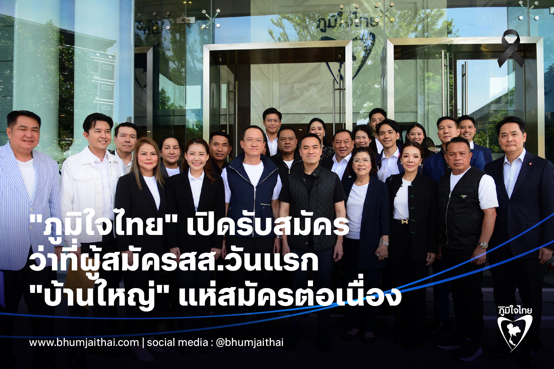 "ภูมิใจไทย" เปิดรับสมัครว่าที่ผู้สมัคร สส.วันแรก บ้านใหญ่ คุณปลื้ม-สุชาติ-เอกนัฏ-วราวุธ พร้อมอดีต สส.เพื่อไทย-ประชาธิปัตย์ เข้ามาสมัครอย่างต่อเนื่อง