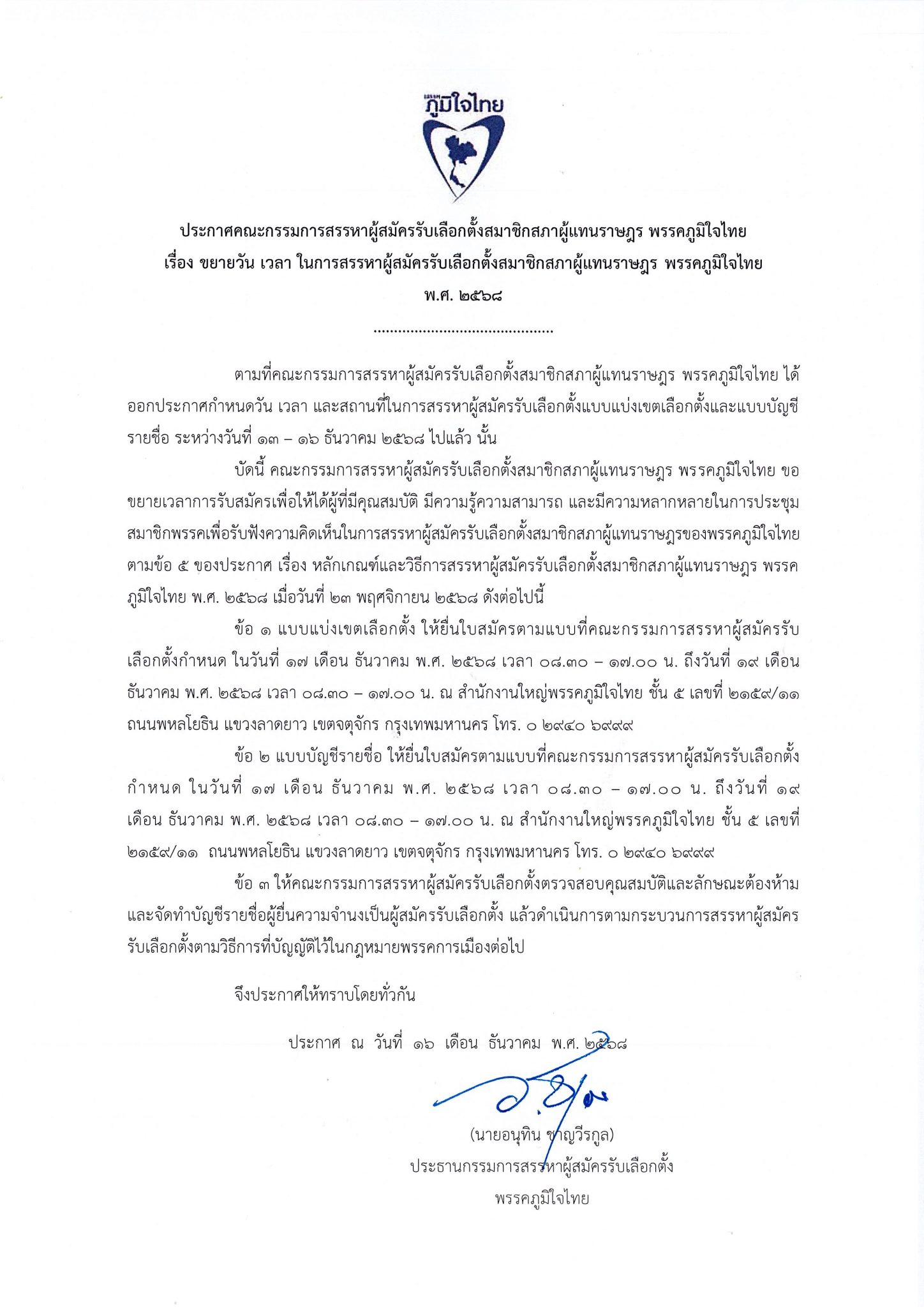 16 ธันวาคม 2568 เวลา 21:26ประกาศคณะกรรมการสรรหาผู้สมัครรับเลือกตั้งสมาชิกสภาผู้แทนราษฎร พรรคภูมิใจไทย เรื่อง ขยายวัน เวลา ในการสรรหาผู้สมัครรับเลือกตั้งสมาชิกสภาผู้แทนราษฎร พรรคภูมิใจไทย พ.ศ. ๒๕๖๘แชร์บทความนี้: