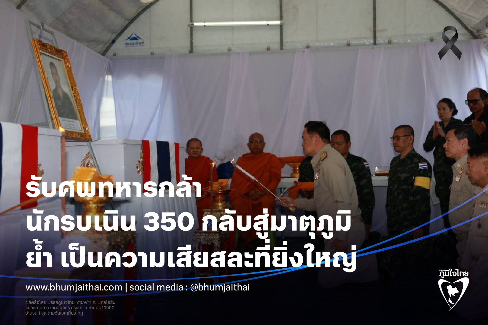 “อนุทิน” เป็นประธานรับศพทหารกล้า นักรบเนิน 350 กลับสู่มาตุภูมิ ย้ำ เป็นความเสียสละที่ยิ่งใหญ่ รักษาแผ่นดินไทยไว้ให้ลูกหลาน ให้คำมั่น รัฐบาลจะดูแลครอบครัวอย่างเต็มที่ ท่ามกลางความโศกเศร้า ชาวสุรินทร์หลั่งน้ำตา อาลัย