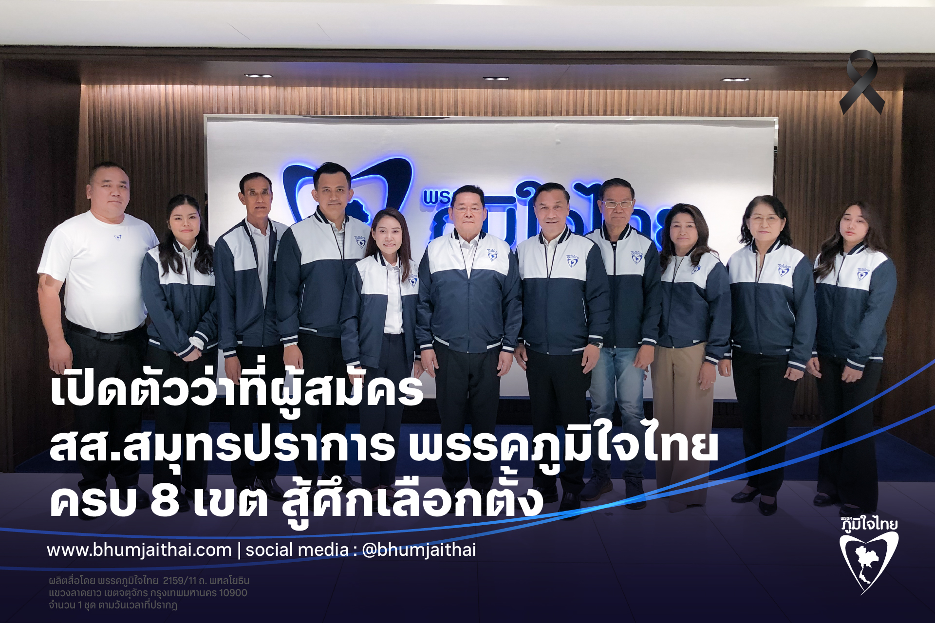 วันที่ 23 ธันวาคม 2568 นายทรงศักดิ์ ทองศรี รัฐมนตรีช่วยว่าการกระทรวงมหาดไทย ในฐานะกรรมการคณะที่ปรึกษาพิจารณากลั่นกรองผู้สมัครรับเลือกตั้งสมาชิกสภาผู้แทนราษฎร ของพรรคภูมิใจไทย เปิดตัวว่าที่ผู้สมัคร สส.สมุทรปราการ ได้แก่ นางสาวแพรวพรรณ พุกพิบูลย์ เขต 1, นายนกเขา ท้วมกลัด เขต 2 , นางอภัสนันท์ ภัคนราธนเศรษฐ์ เขต 3, นางสาวพิมพ์พรรณ พึ่งบุญ เขต 4, ดร.ยุคลฉัตร หลำวรรณะ เขต 5, นายฐาปกรณ์ กุลเจริญ เขต 6, ดร.ไพลิน เทียนสุวรรณ เขต 7, นายวิบูลย์ชัย ขาวทองบริสุทธิ์ เขต 8 เพื่อลงสมัครรับเลือกตั้งในนามพรรคภูมิใจไทย